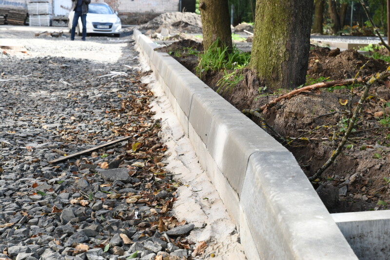 Тривають активні роботи і на вулиці Потебні, 50. Наразі тут мостять бруківку, займаються благоустроєм, заливають відмостку. А ось на вулиці Глієра роботи уже завершені. Залишилося підмостити узбіччя.