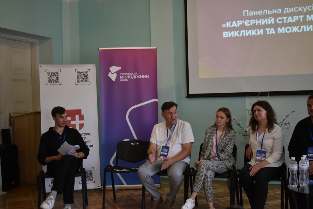 Опісля завершення панельної дискусії про виклики і можливості кар’єрного старту, учасники форуму перейшли до презентації грантового конкурсу «Програма молодіжної гарантії» для роботодавців та випускників закладів профтехосвіти, а також воркшопів.