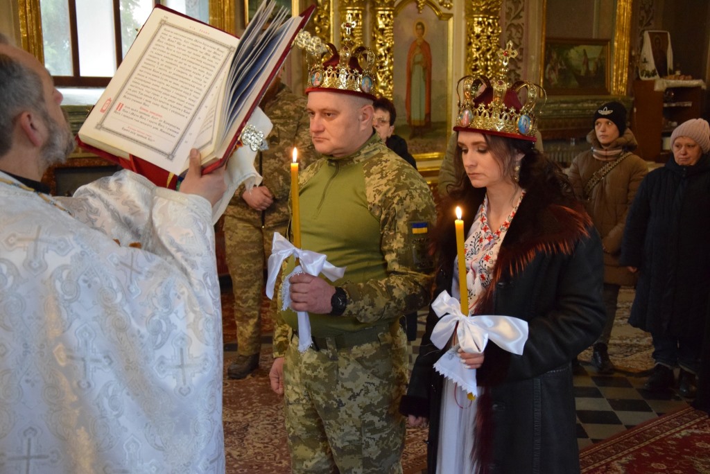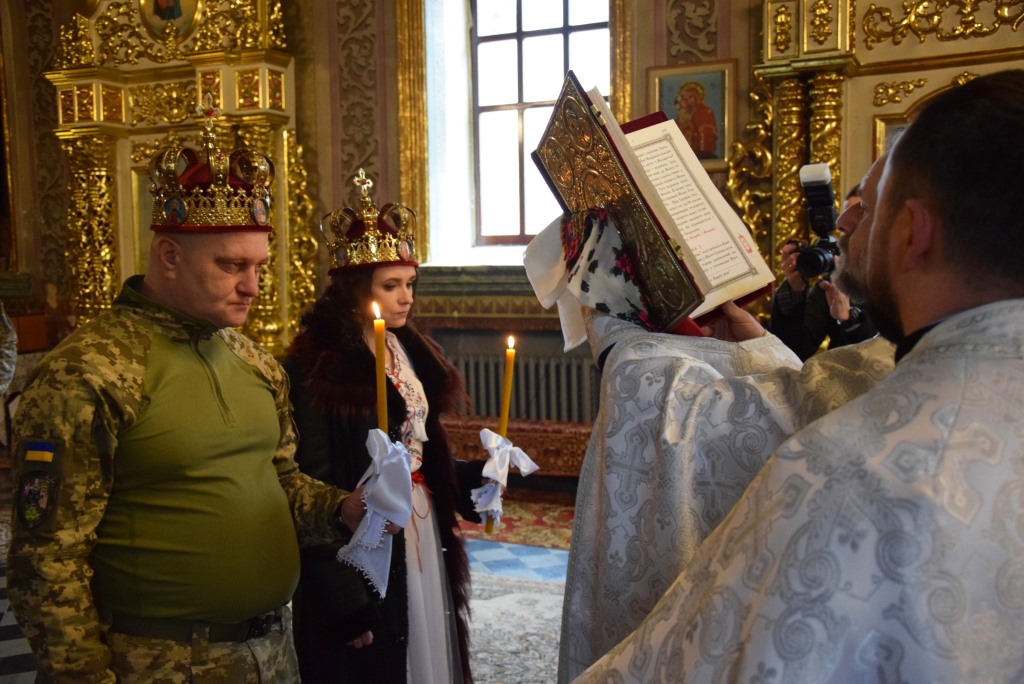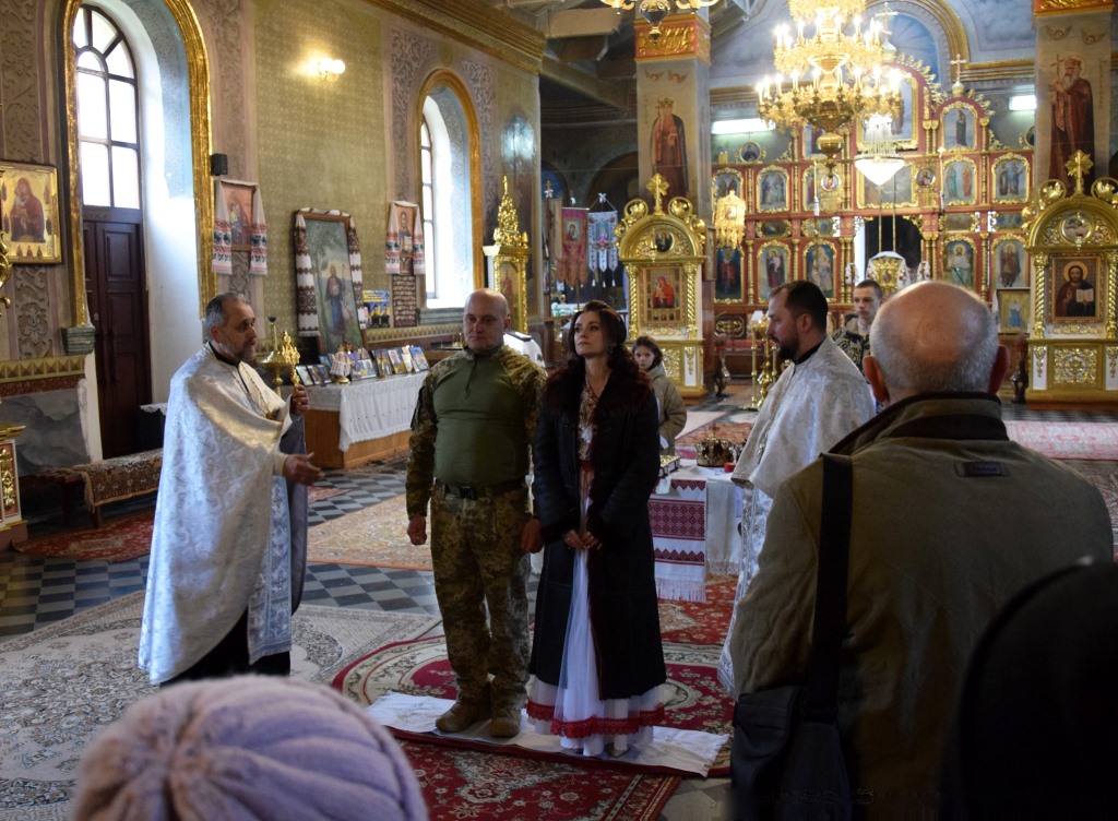 Настоятель храму отець Микола і військовий капелан протоієрей Михайло Хімчак благословили подружжя, побажали їм любові, вірності та Божого захисту. Символом їхньої єдності став рушник, на який вони разом стали, вплітаючи у нього свої мрії та надії на щасливе майбутнє.