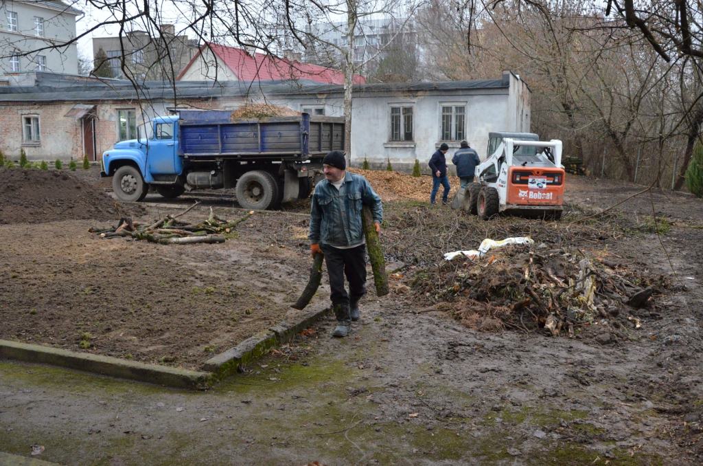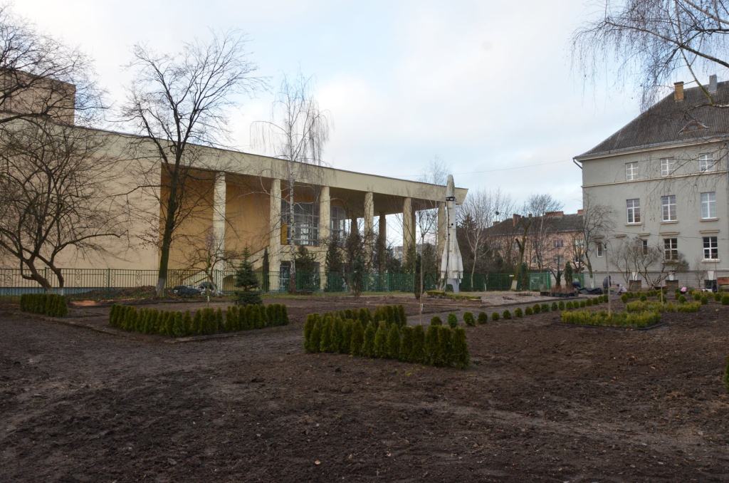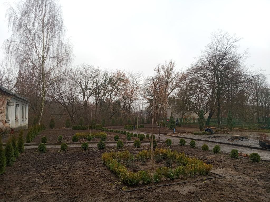 На сьогодні вдалося облагородити та озеленити територію внутрішнього дворика. А саме: здійснили розчищення території, висадка дерев, кущів та декоративних рослин. Також підготували ґрунт для посадки трави навесні. Саме холодна пора року та карантинні обмеження стали на заваді остаточного облагородження території. Тому завершальний етап робіт проведуть навесні. І вже зовсім скоро ми з радістю зустрічатимуть гостей у Музейному дворику.