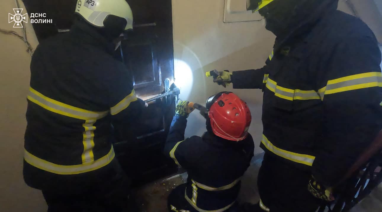 На місце події негайно виїхали рятувальники аварійно-рятувальної частини спеціального призначення м. Луцька. За допомогою шанцевого інструменту вони відчинили двері та надали доступ медичним працівникам.