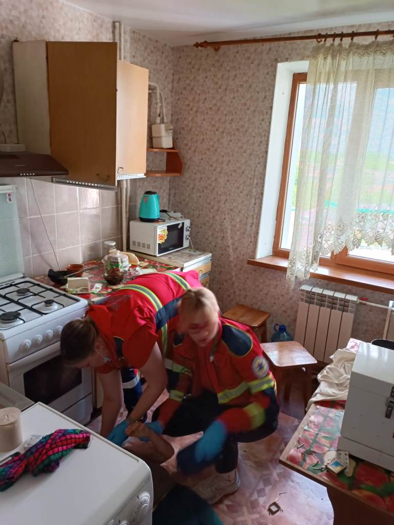 У помешканні на підлозі лежала жінка, яка не виходила на зв’язок. На щастя, вона була живою, однак не могла самотужки підвестися. Працівники екстреної медичної служби надали першу медичну допомогу жінці, після чого рятувальники допомогли транспортувати пенсіонерку до карети швидкої.