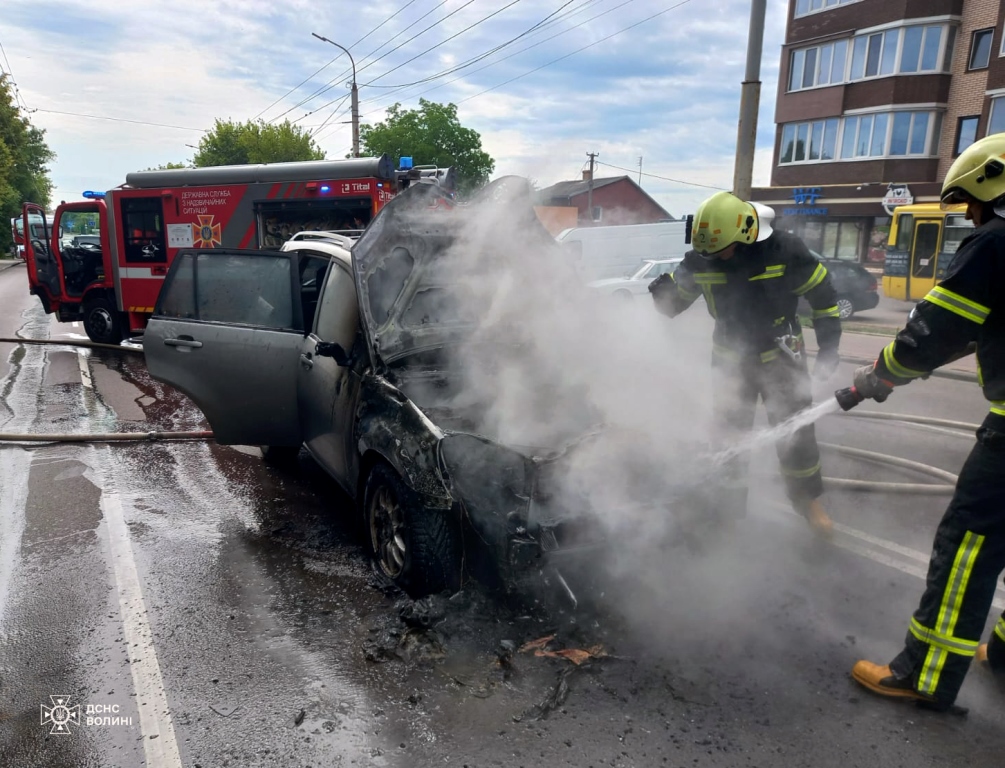 У Луцьку рятувальники ліквідували пожежу легкового автомобіля, що загорівся під час руху