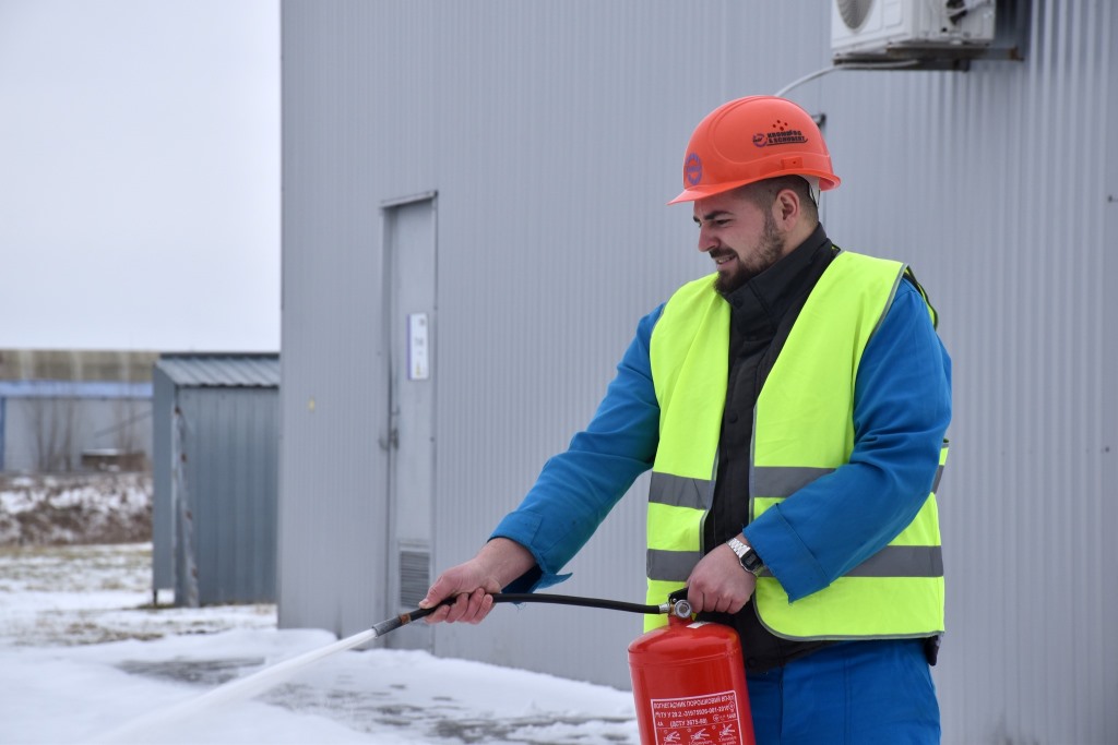 Зокрема працівники добровільної пожежної дружини підприємства відпрацювали першочергові дії з ліквідації імітованої пожежі із застосуванням первинних засобів пожежогасіння.
