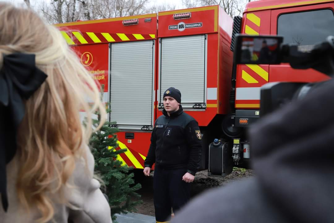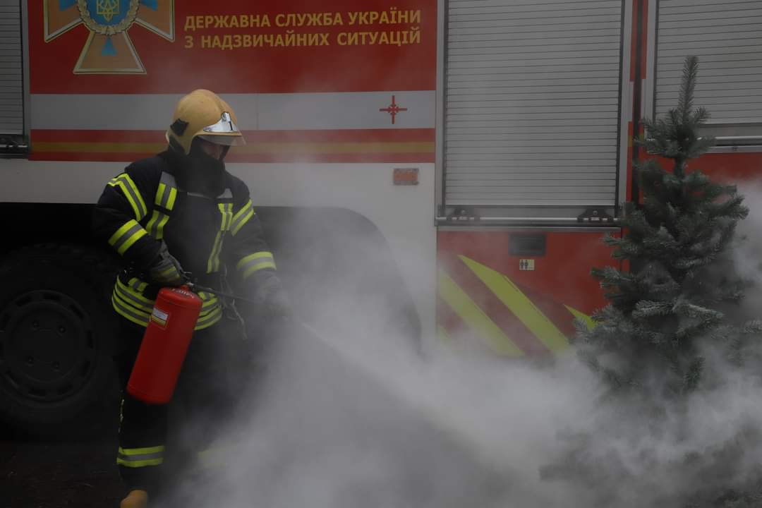 У Луцьку рятувальники показали, як гасити палаючу ялинку