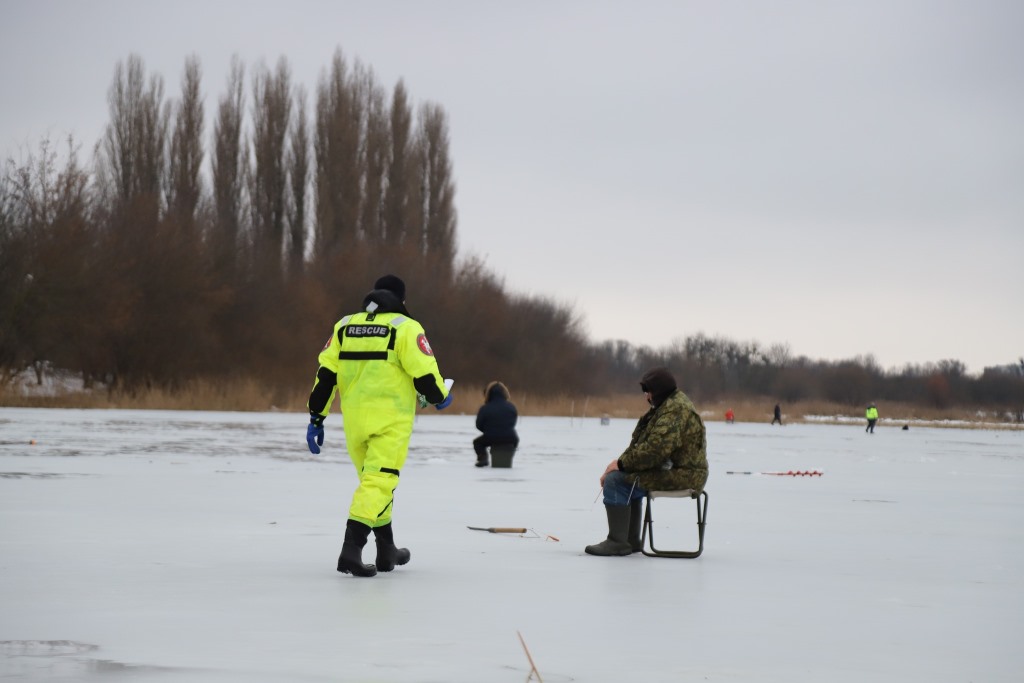 У Луцьку рятувальники розповіли любителями зимової риболовлі про небезпеки виходу на водойми взимку