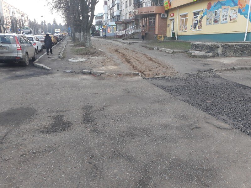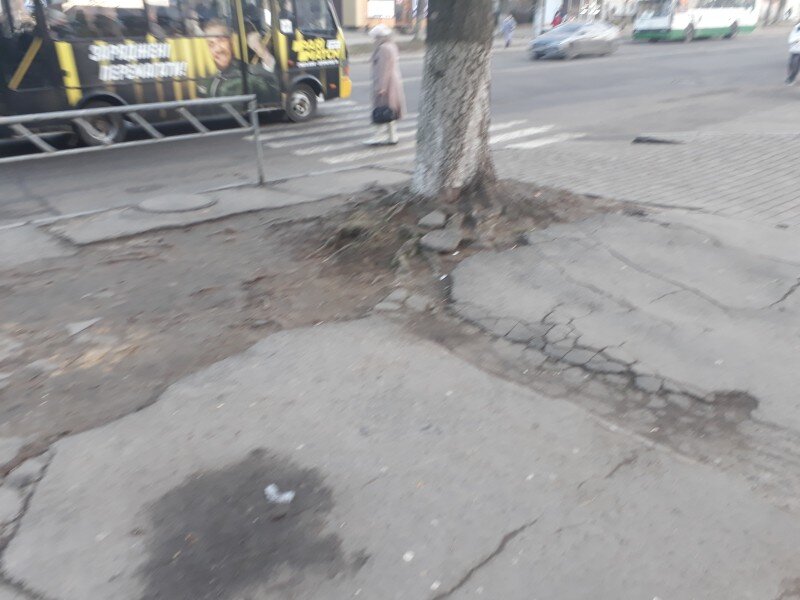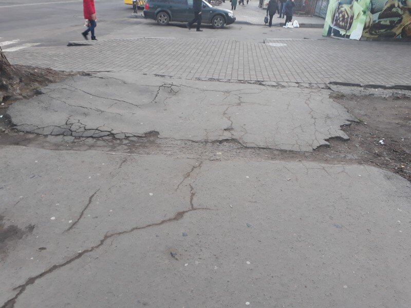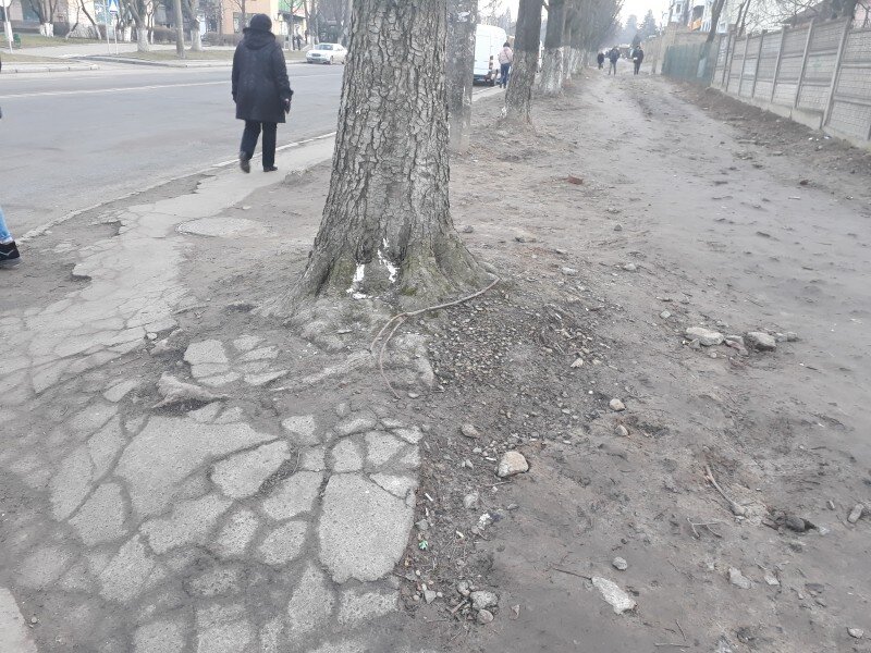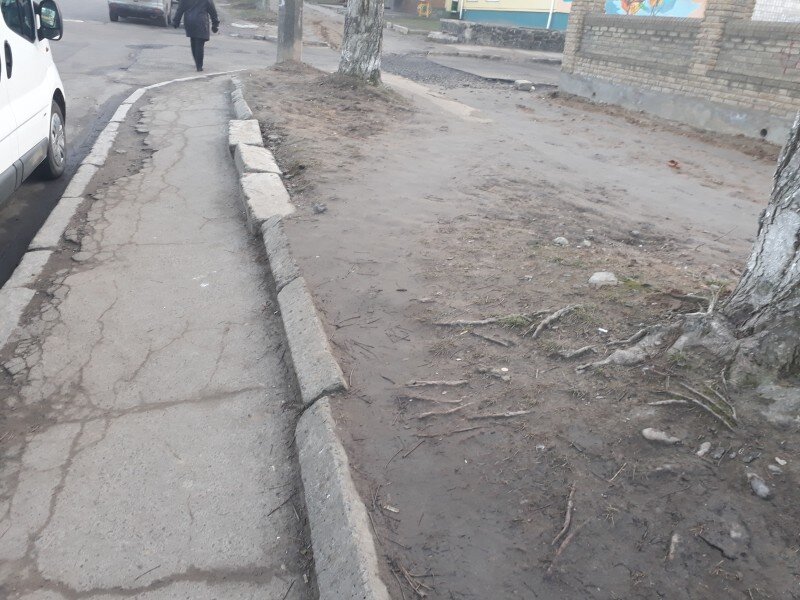 “Тротуар вздовж проспекту Відродження починаючи від перетину з вулицею В. Хурсенка до вулиці Рівненської перебуває в аварійному стані, небезпечному для пересування пішоходів. Частина тротуару була зруйнована з плином часу, частину ж зруйнувала техніка. Вивернуті бордюри, зруйнований асфальт, болото замість твердого покриття — вулиця потребує ремонту”, — написала жінка.