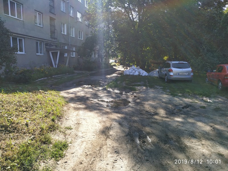 У Луцьку скаржаться на занедбану прибудинкову територію на вулиці Потебні, 46.