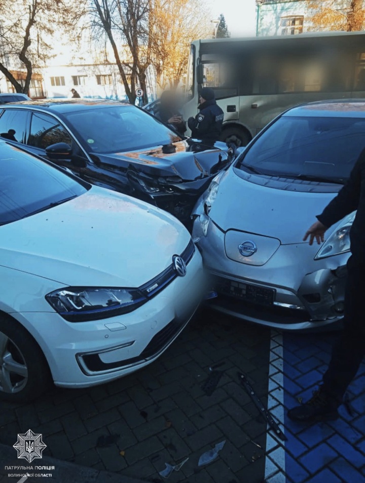 Після цього транспортні засоби допустили зіткнення з припаркованими “Volkswagen” та “Audi”, що були розташовані на парковці навпроти будинку на проспекті Волі.