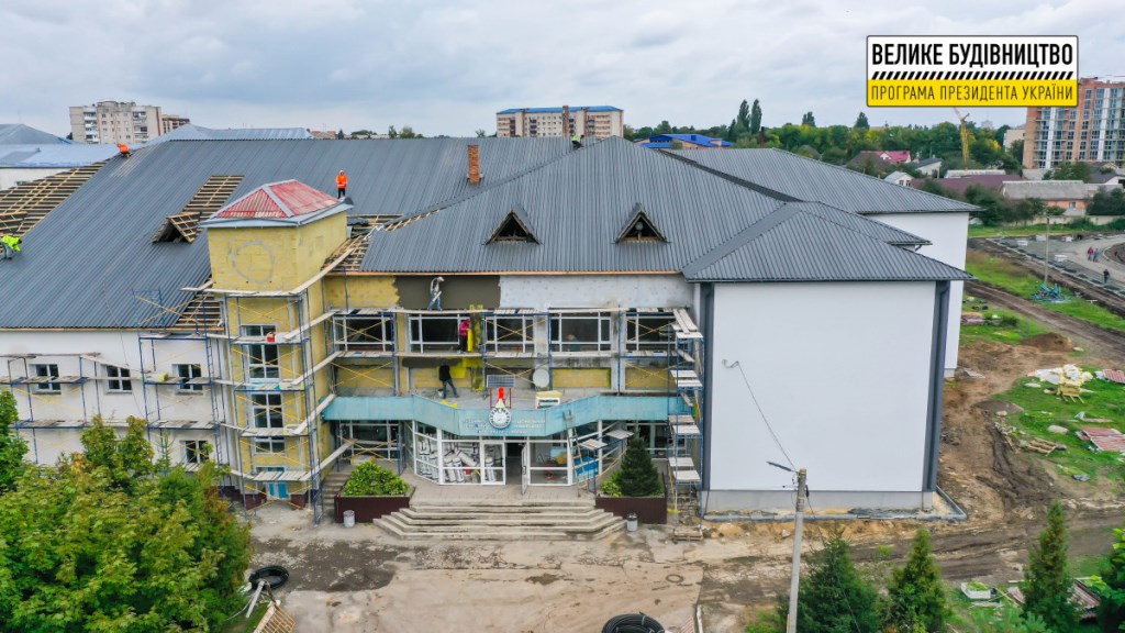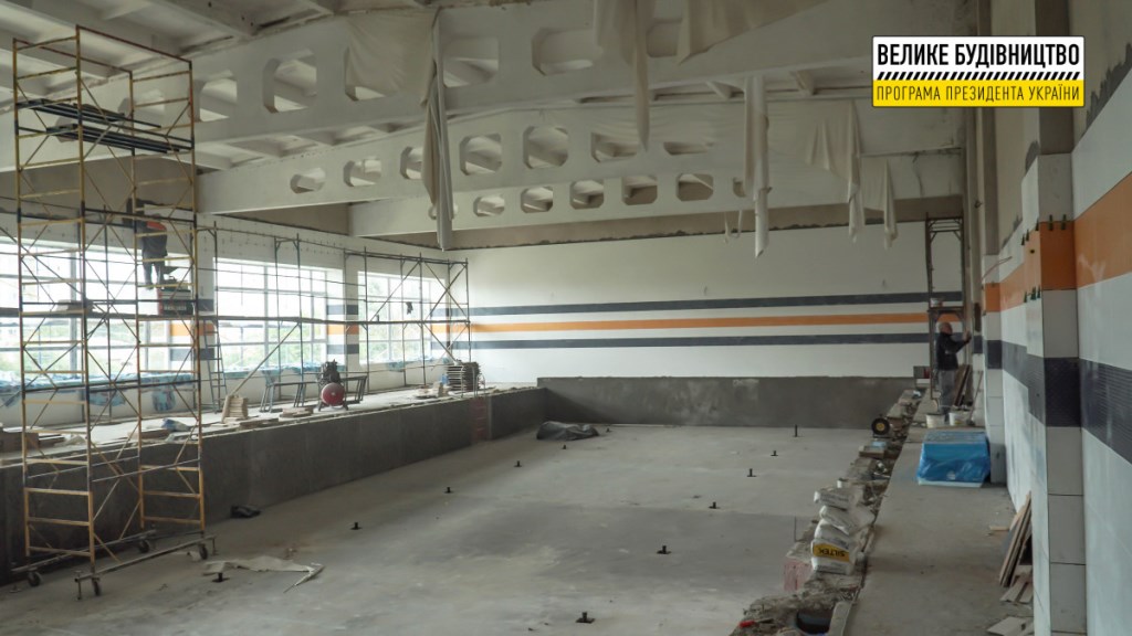 Наразі ремонтні роботи у розпалі. Зокрема, будівельники кладуть плитку у приміщенні, де розміщений басейн, а ззовні – утеплюють та оздоблюють фасад.