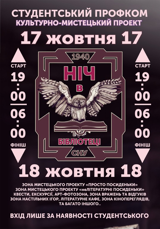 У ніч з 17-го на 18 жовтня відбудеться реалізація культурно-мистецького проекту «Ніч у бібліотеці».