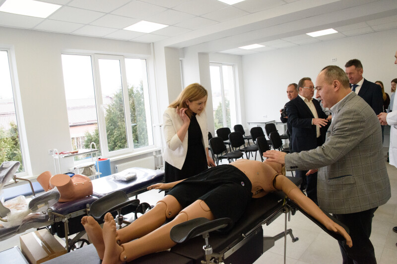 Разом із деканом факультету Андрієм Поручинським Ірина Чебелюк оглянула капітально відремонтоване приміщення, його матеріально-технічну базу, вмеблювання, що відповідає стандартам медичного факультету, побувала в навчальних лабораторіях, зокрема, віртуальної анатомічної візуалізації та віртуальної фізіології з відповідним програмним забезпеченням.