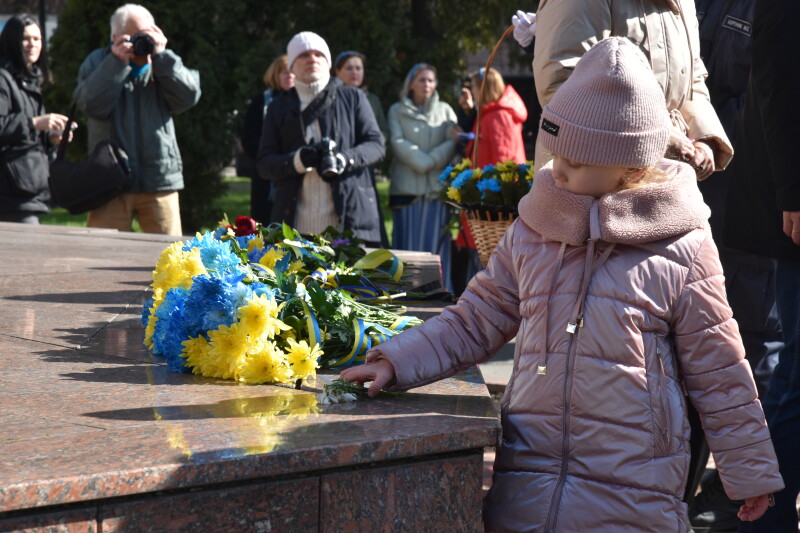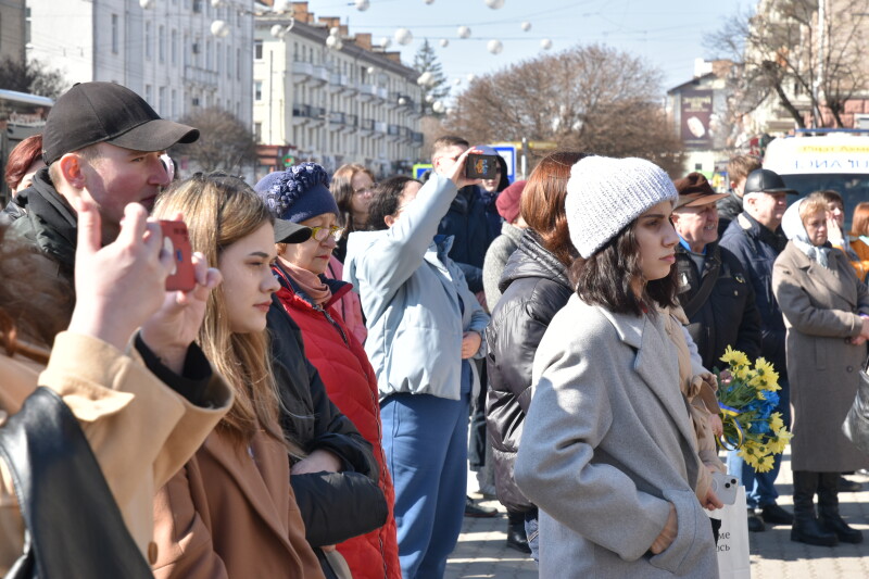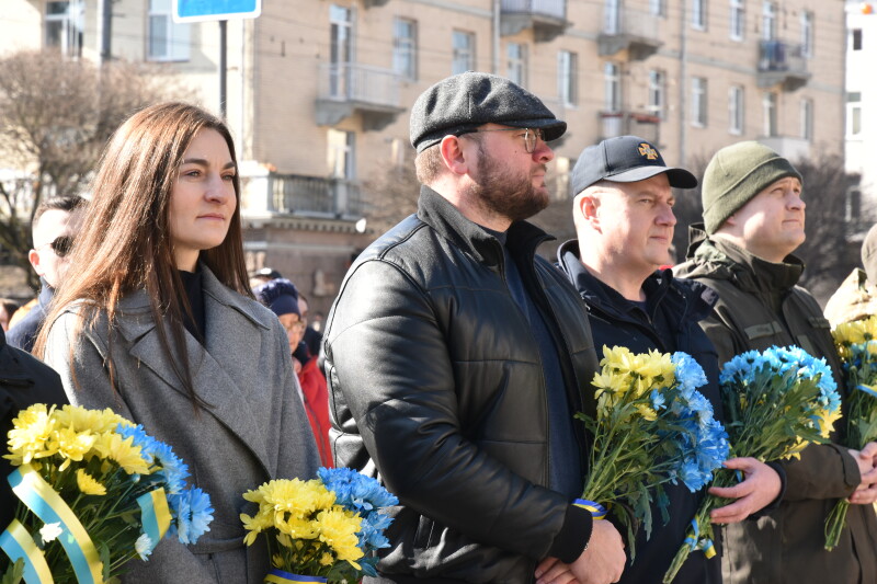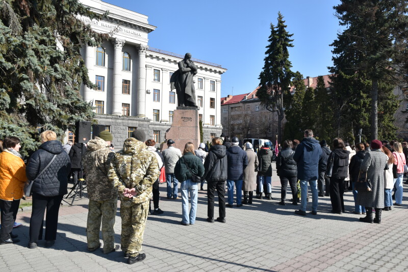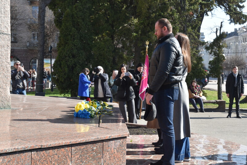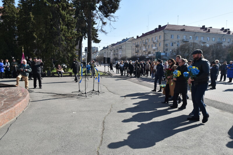 Після хвилини мовчання в честь загиблих внаслідок російсько-української війни, представники влади, творчої інтеліґенції та громадськості поклали квіти до підніжжя Тараса Шевченка. Серед присутніх — Луцький міський голова Ігор Поліщук, заступник голови Волинської обласної ради Григорій Пустовіт, народний депутат України Ірина Констанкевич.