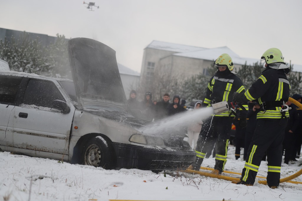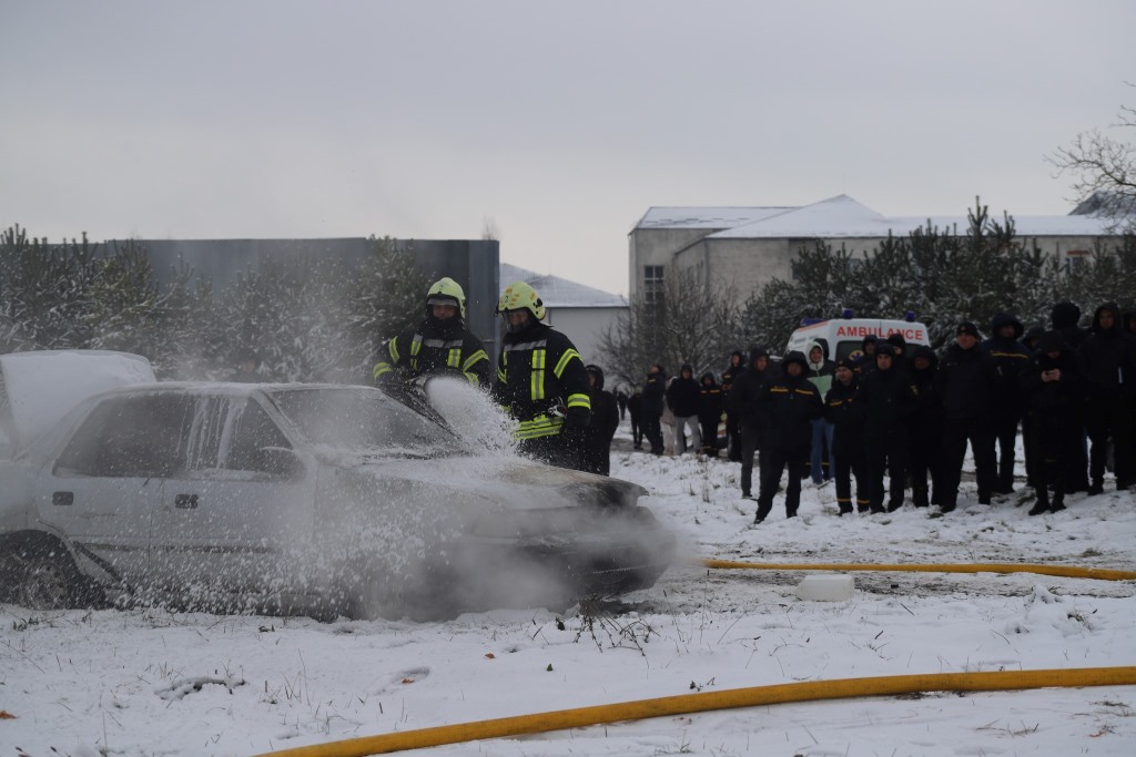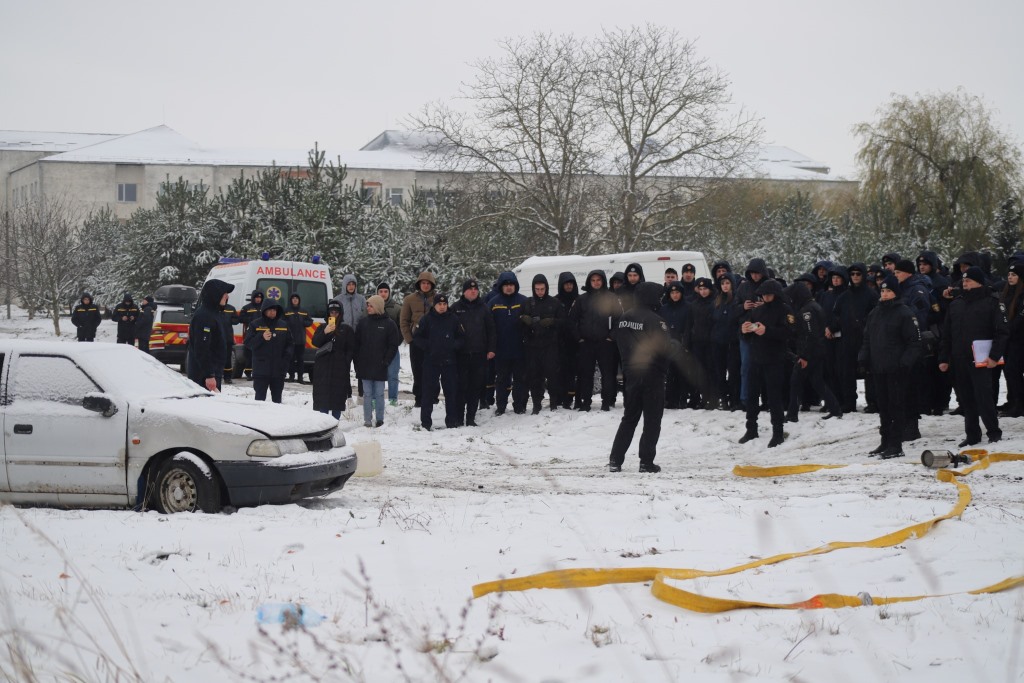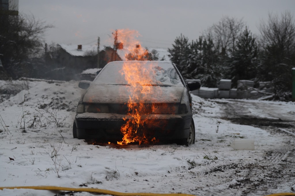 Наступний етап семінару відбувся на спеціальному майданчику, де відтворили загоряння легкового автомобіля. Тож, учасники семінару мали нагоду набути практичного досвіду у тонкощах проведення огляду місця події та об’єкту пожежі – легкового транспортного засобу.