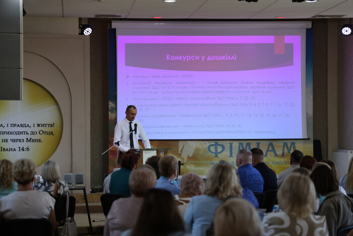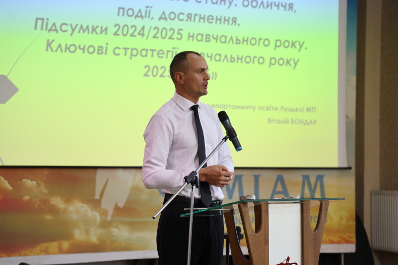 З доповіддю виступив директор департаменту освіти Луцької міської ради Віталій Бондар, зазначивши, що «освіта в умовах війни стала символом сили, витривалості та віри у майбутнє. Вона довела, що навіть перед обличчям катастрофи ми здатні не лише вижити, а й розвиватися, формуючи покоління, яке будує нову країну», – сказав Віталій Бондар.