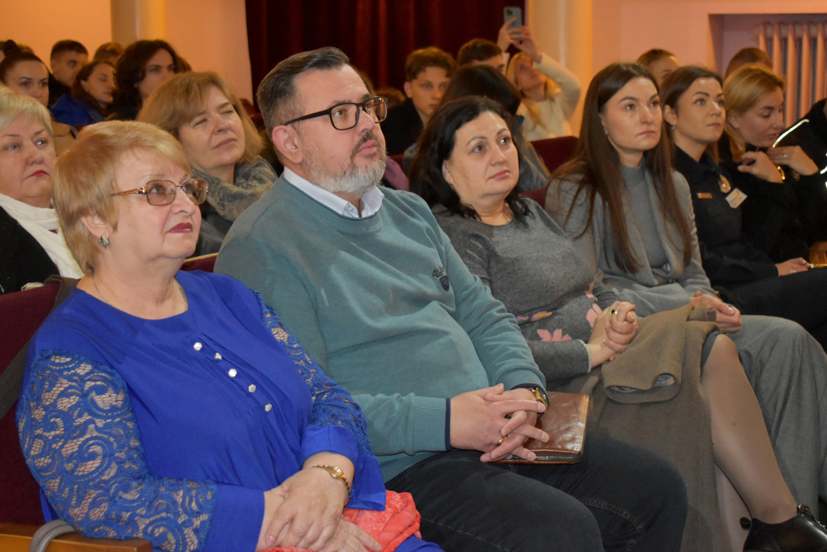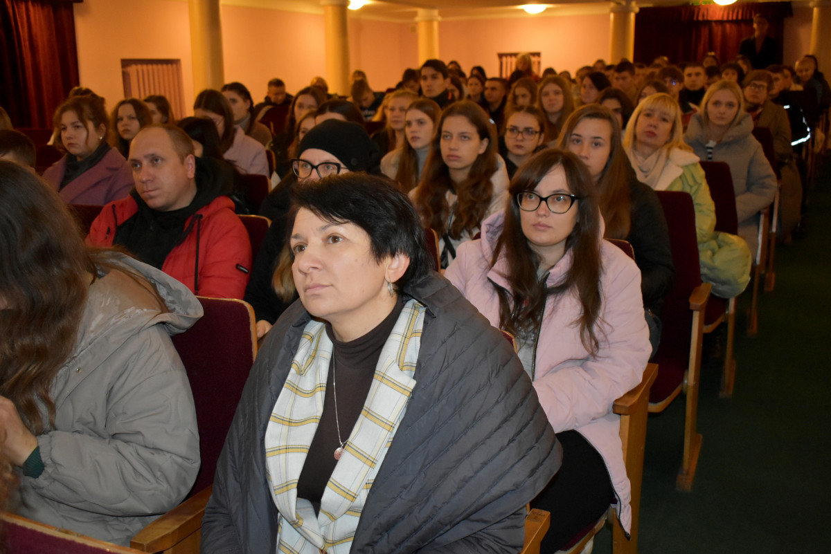 Потому присутні мали змогу переглянути виставу-роздум під назвою «Я ще людина» за поемою Григорія Чубая «Вертеп», яку представили старші студійці зразкового театрального колективу «Бешкетники» Палацу культури міста Луцька.