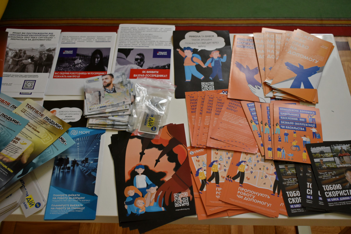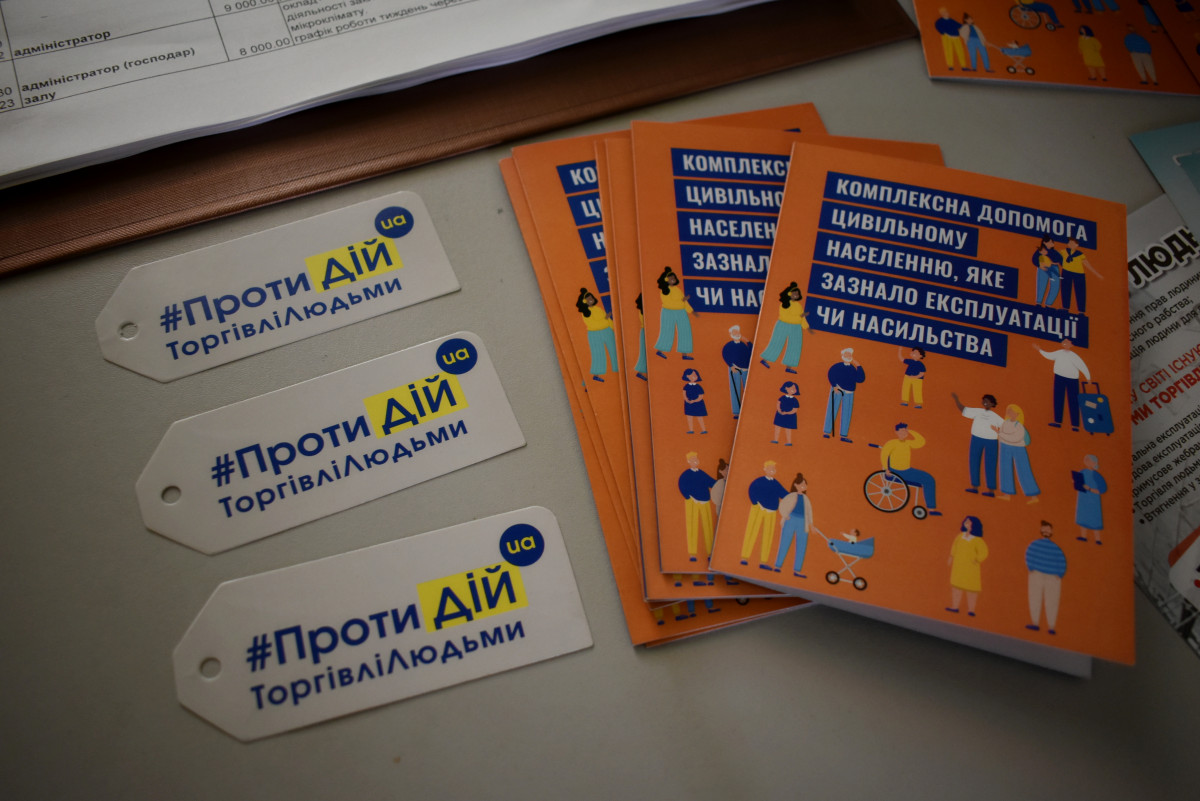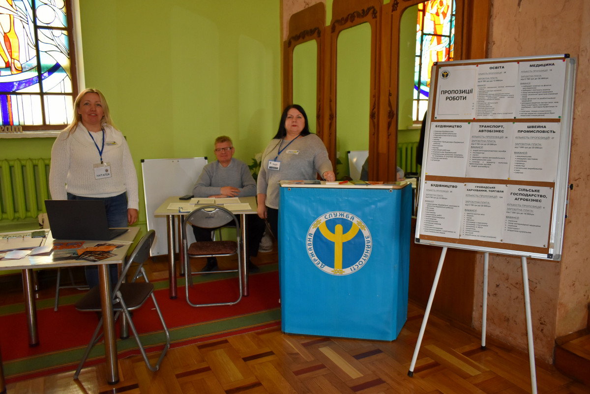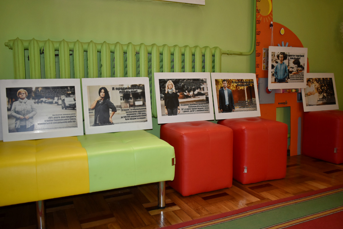 Зокрема, в холі закладу організували театралізовану акцію «Тіні відсутності», а також фотовиставку «Я проти торгівлі людьми!». Окрім того, розмістили екран, на якому продемонстрували фільм «Обізнані захищені!». А працівники служби зайнятості презентували ярмарок актуальних вакансій та розповсюджували друковану продукцію щодо протидії торгівлі людьми.
