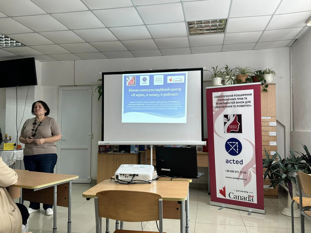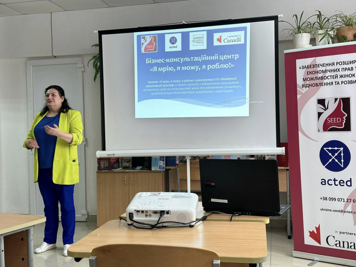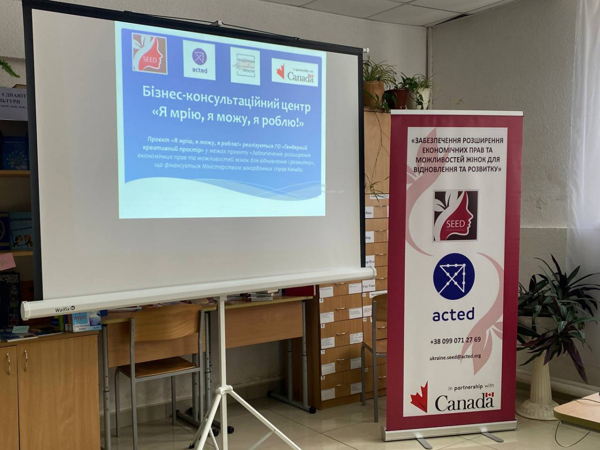 Бзнес-консультативний центр «Я можу, я мрію, я роблю!» створили у межах проекту ГО “Ґендерний креативний простір” / Gender creative space за підтримки уряду Канади через Міністерство міжнародних справ Канади та організації ACTED.