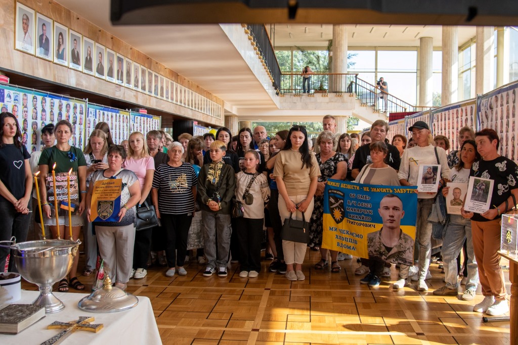 Фотовиставка, присвячена Захисникам України, які зникли безвісти або перебувають у полоні, відкрилася сьогодні в обласному музично-драматичному театрі ім. Т. Г. Шевченка.