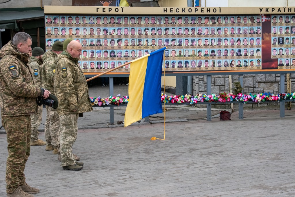 Учасники заходу поклали жовто-блакитні квіти до підніжжя фотостенду та спільно виконали Державний Гімн України.
