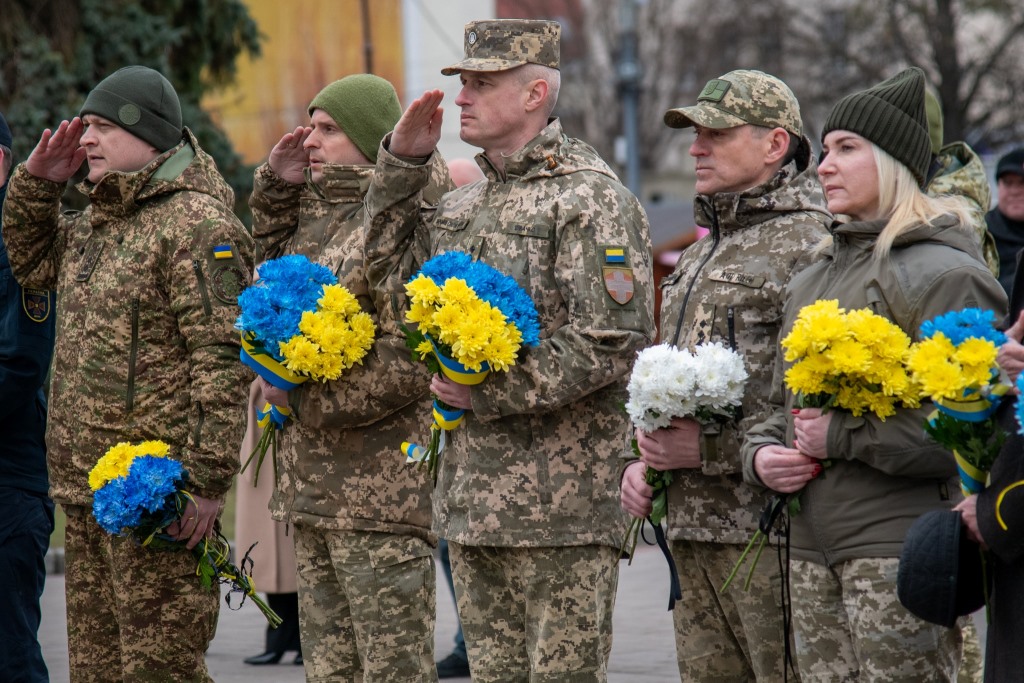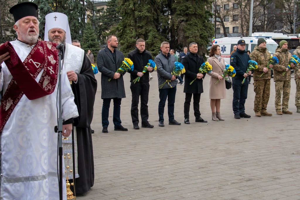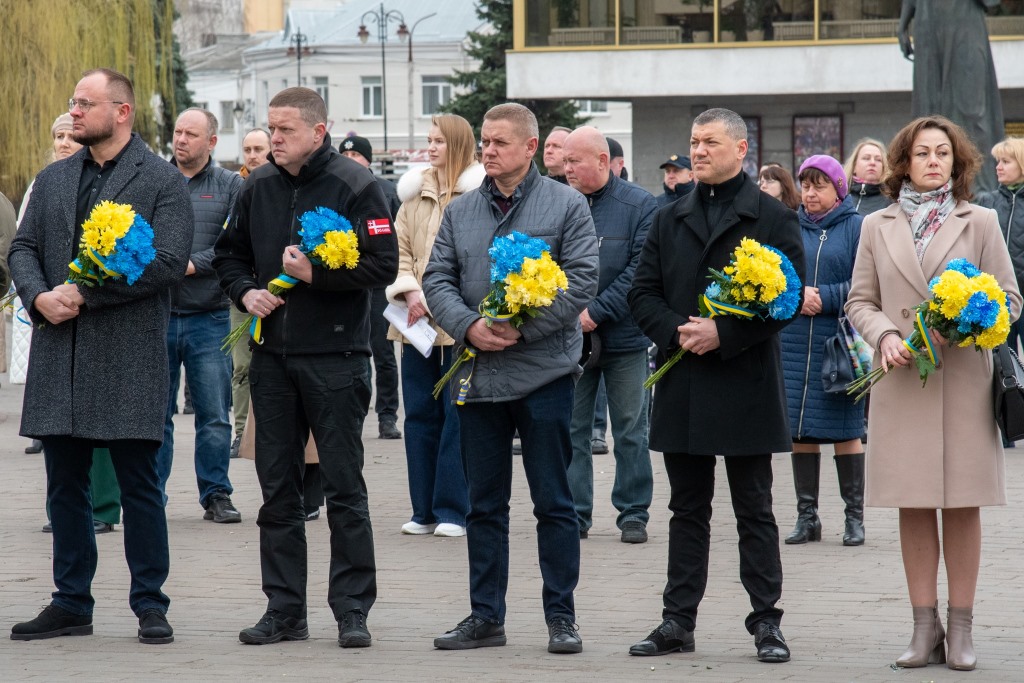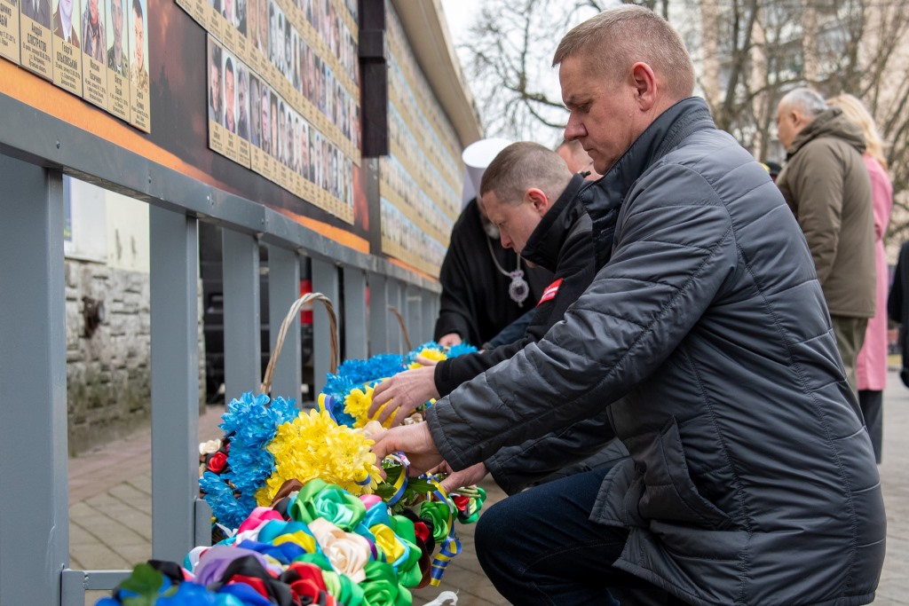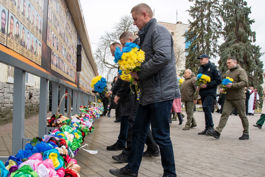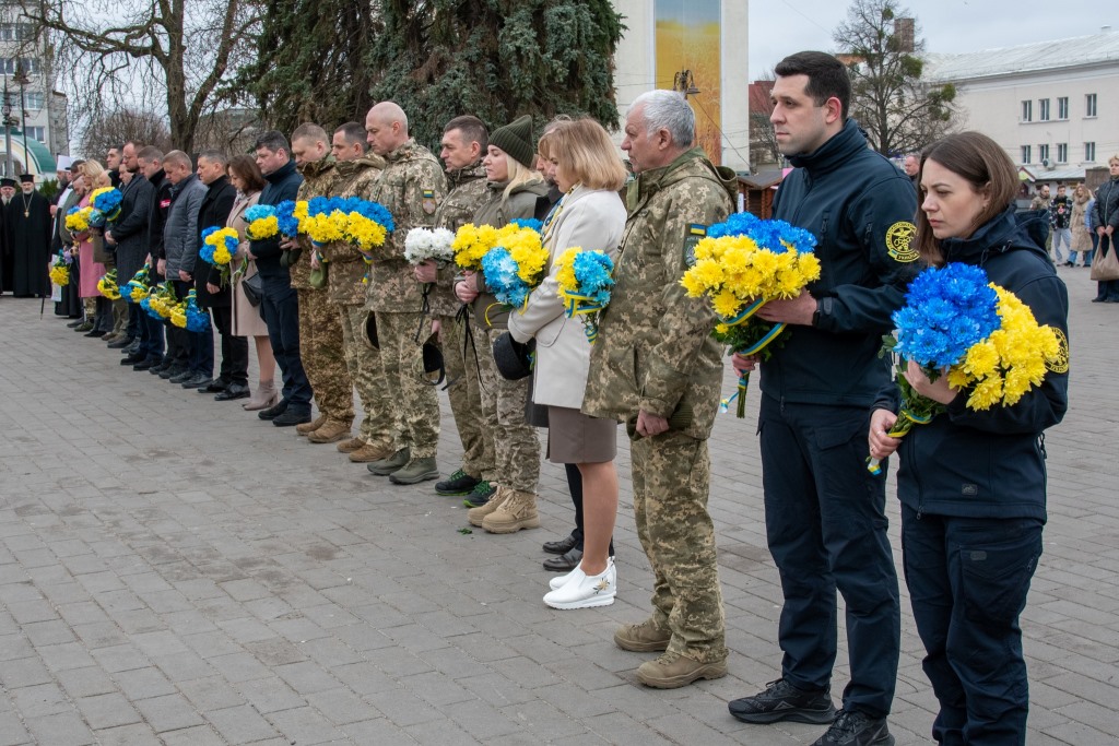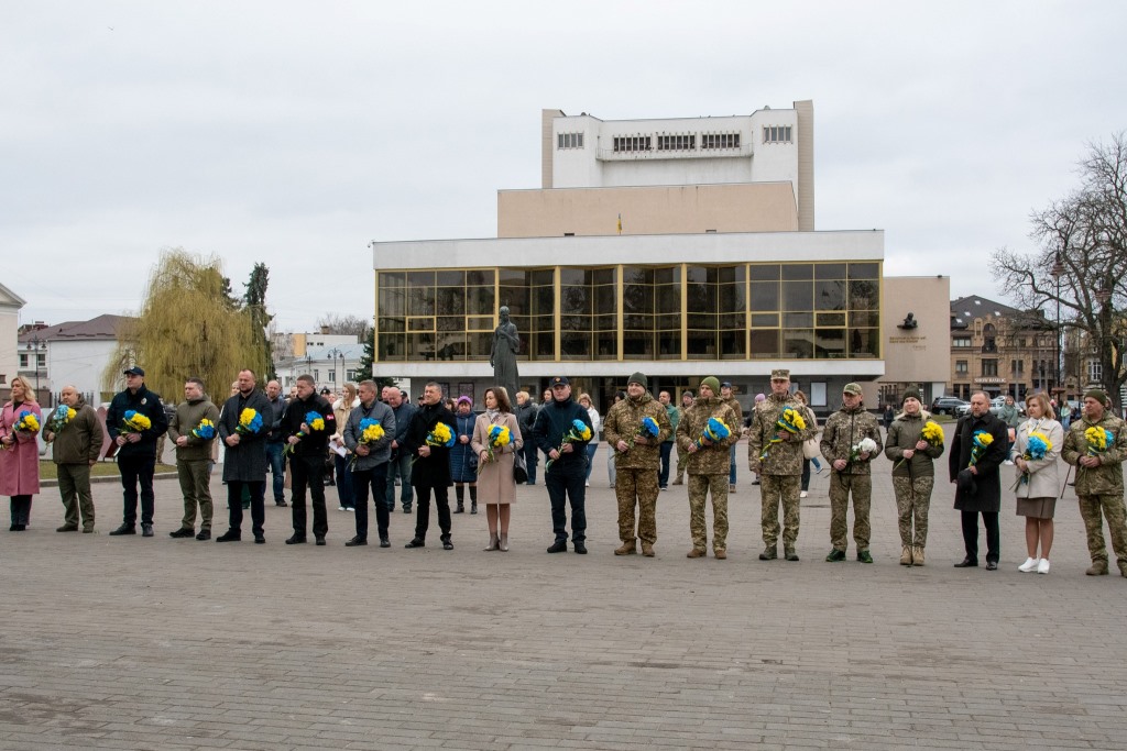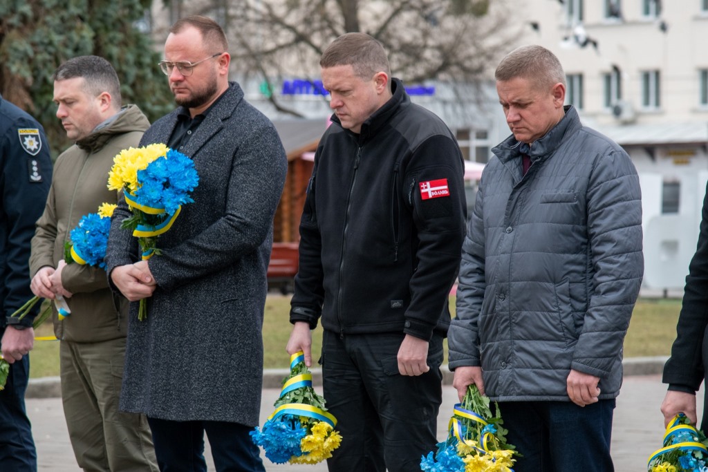 На Театральному майдані Луцька, поблизу пам’ятного фотостенду – «Герої Небесної Сотні – Загинули за Єдність України» зібрались ветерани-добровольці, волонтери, військовослужбовці, правоохоронці, духовенство, представники громадськості, а також керівництво області та міста. Волиньраду представляли перший заступник голови Юрій Поліщук та депутати.