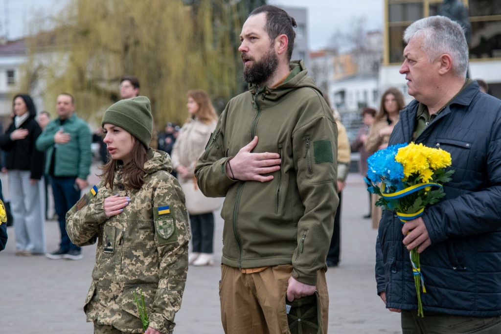 Учасники заходу поклали жовто-блакитні квіти до підніжжя фотостенду та спільно виконали Державний Гімн України.
