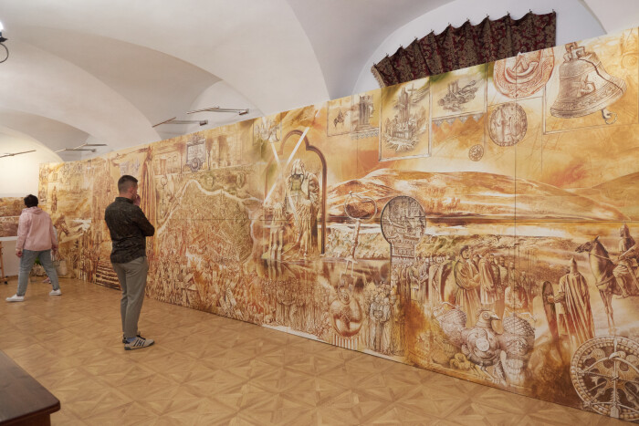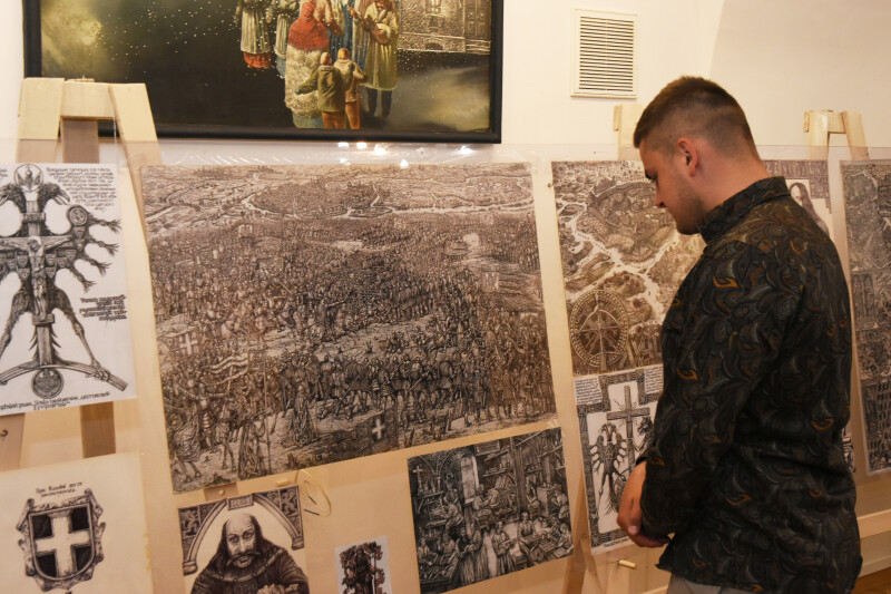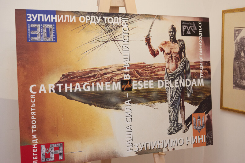 Відтак, у день свого професійного свята Художній музей представив новий мистецький проект із назвою “Україна об’єднує світ: наша сила – в нашій історії”. Автори-учасники Олександр Дишко, Елеонора Сабова-Дишко, Олександр Більчук – добре відомі у мистецькому середовищі України. Неодноразово їх колектив “Куля” у співпраці з науковими співробітниками музею розгортав перед глядачами цікаві експозиції на теми вітчизняної історії. Малярство, авторська і комп’ютерна графіка, художні плакати високого мистецького рівня захоплювали любов’ю до минувшини, прагненням відкрити співвітчизникам її призабуті сторінки. Гасла Олександра Дишка, створені декілька років тому: “Карфаген має бути зруйнований”, ” Перемогли орду тоді – переможемо і сьогодні”, ” Хочеш знати, що буде – подивись, що було!” є надзвичайно актуальними і сьогодні.