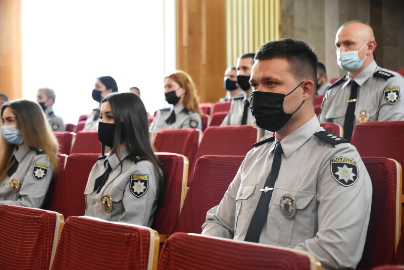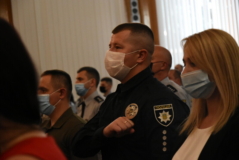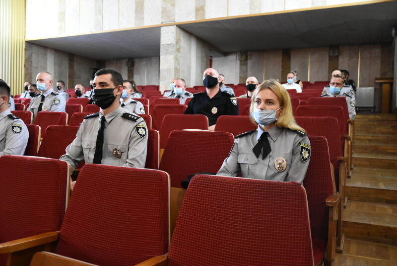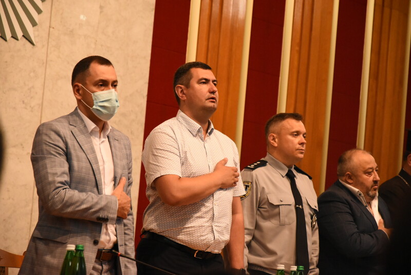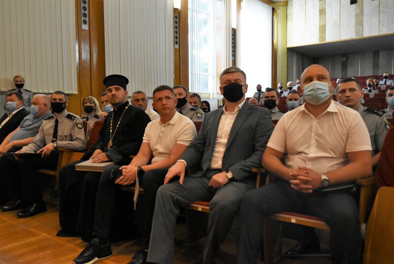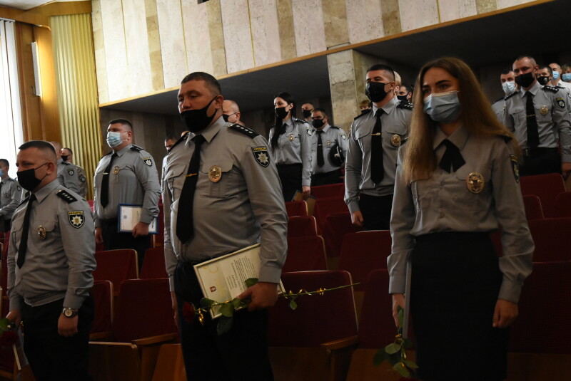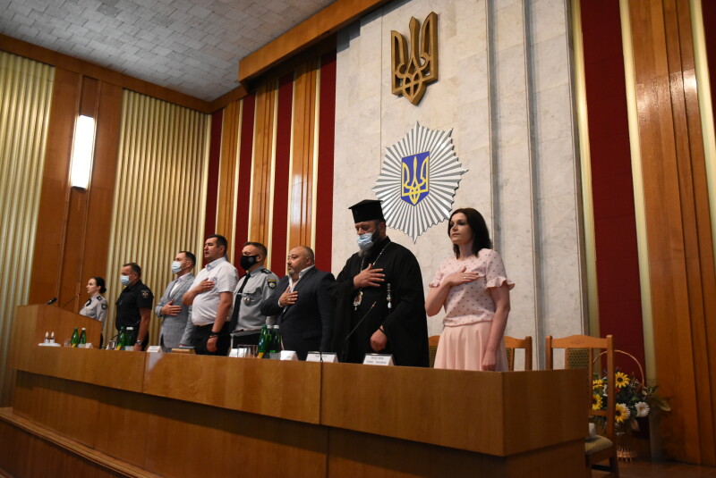 Урочистості розпочались із виконання Державного гімну та хвилини мовчання за поліцейськими, які загинули під час виконання службових обов’язків на Сході України.