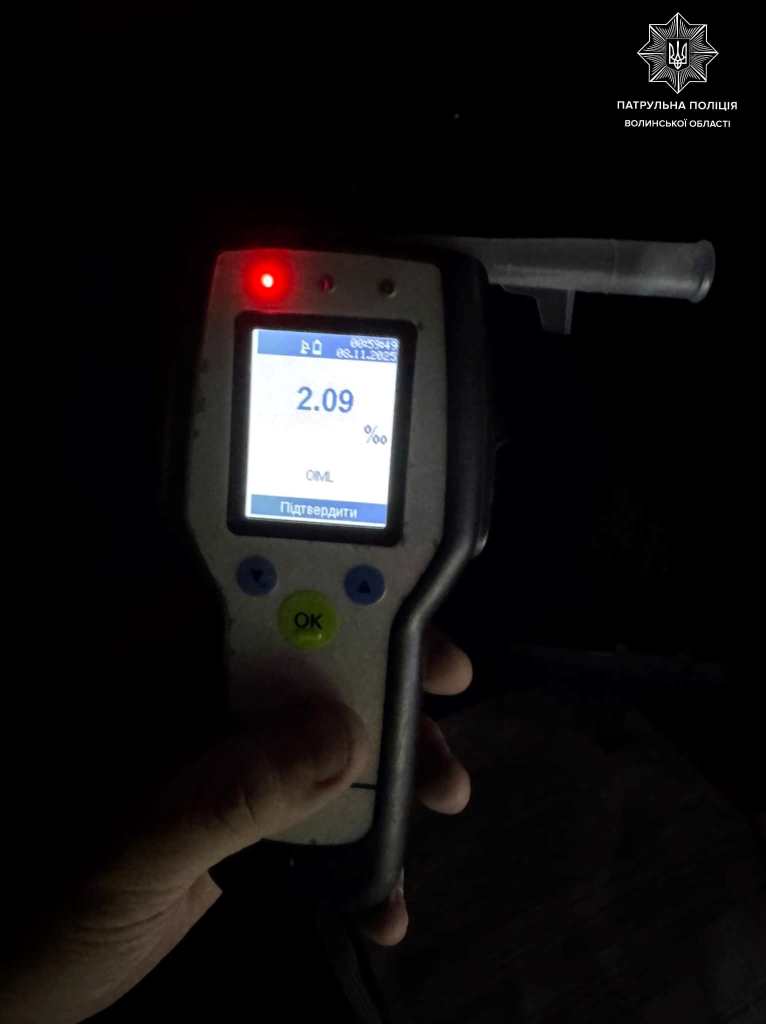 Під час спілкування з керманичкою інспектори виявили в неї ознаки алкогольного сп’яніння. Жінка погодилася пройти огляд на приладі Драгер. Результат позитивний, прилад зафіксував 2,09 проміле, що в понад 10 разів перевищує допустиму норму.