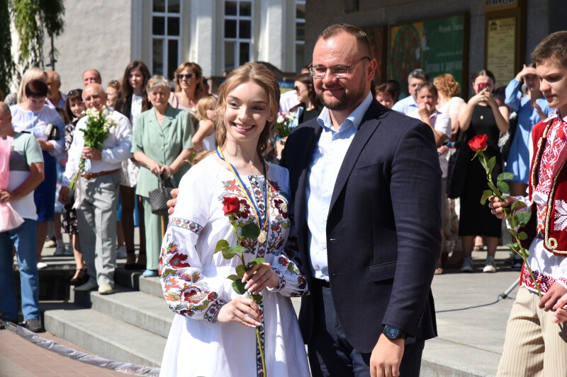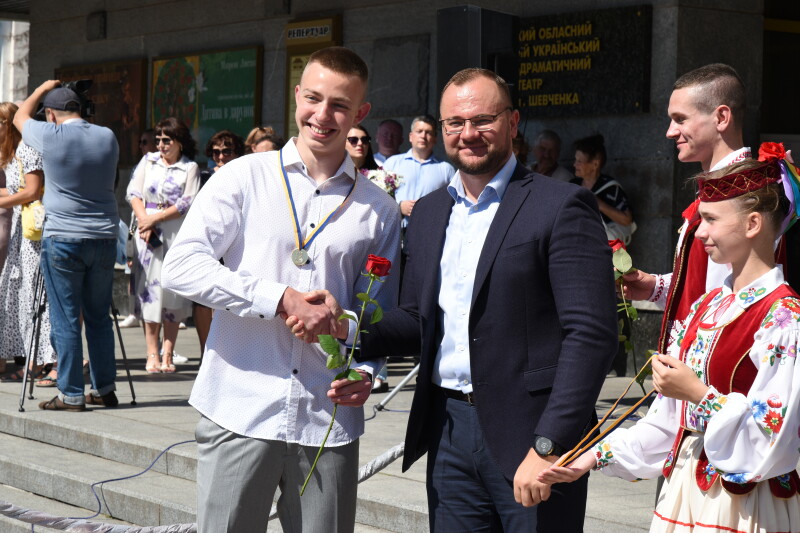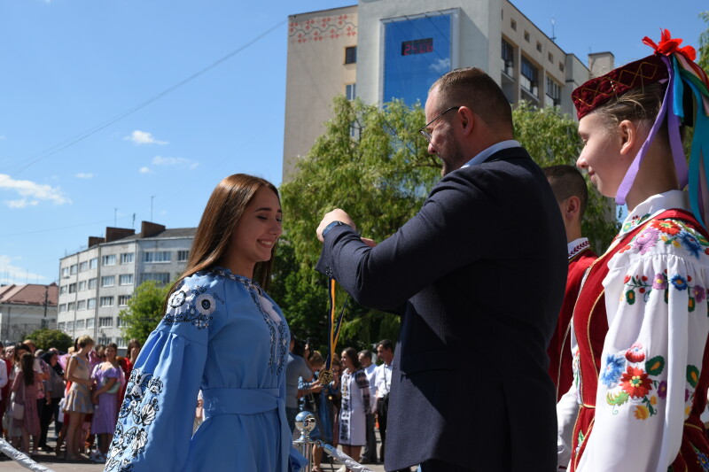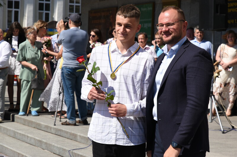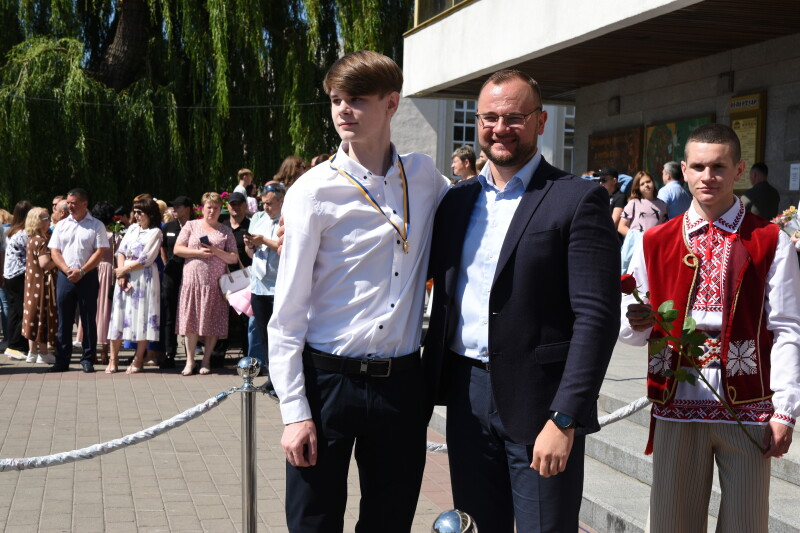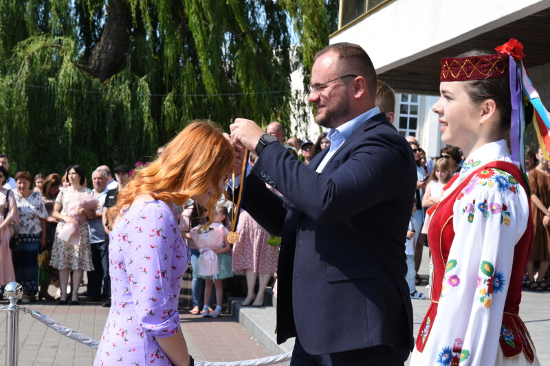 “Дорогі вчителі, шановні батьки, дорогі випускники-медалісти щиро вітаю вас із успішним завершенням навчання, – звернувся міський голова до присутніх. – Навчання у школі дуже важливий етап у житті кожної людини, і я хочу привітати вас, адже цей етап у вашому житті завершився на відмінно. Сьогодні на цій площі стоять ті випускники, які були найбільш старанними, найбільш активними, найбільш працьовитими, і саме тому вони є в числі найбільш успішних. Якщо ви далі у своєму житті також будете працьовитими, старанними, активними, якщо будете викладатись на усі сто відсотків, ви обов’язково і, в подальшому, будете успішними.
