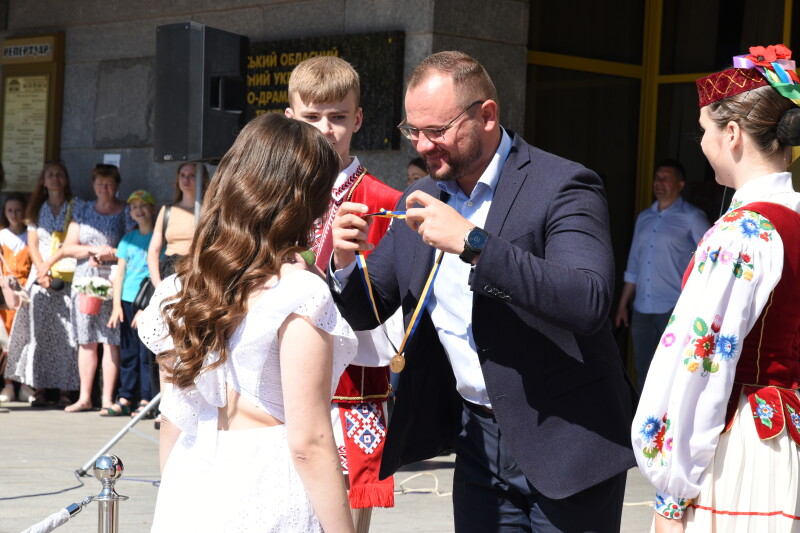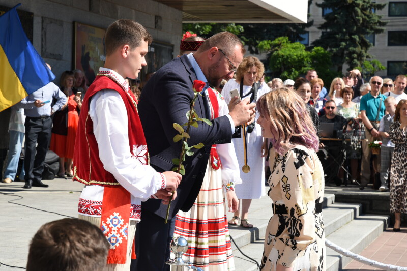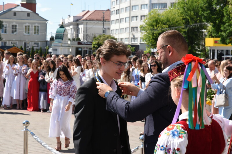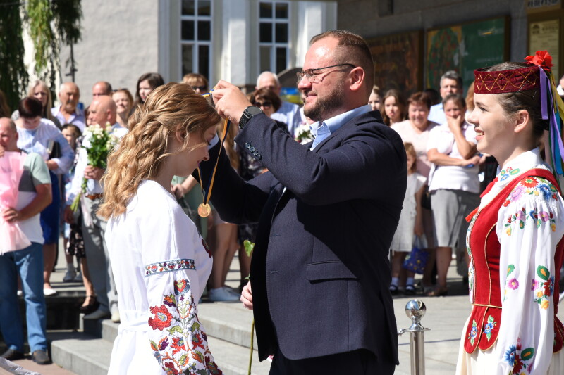 160 золотих та 43 срібних — такий урожай медалей зібрали луцькі випускники 2022 року. Сьогодні на Театральному майдані Луцька медалістам вручали ці заслужені нагороди. Урочисту місію доручили Луцькому міському голові Ігорю Поліщуку.