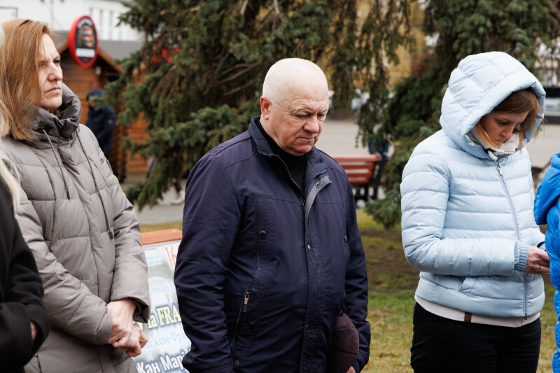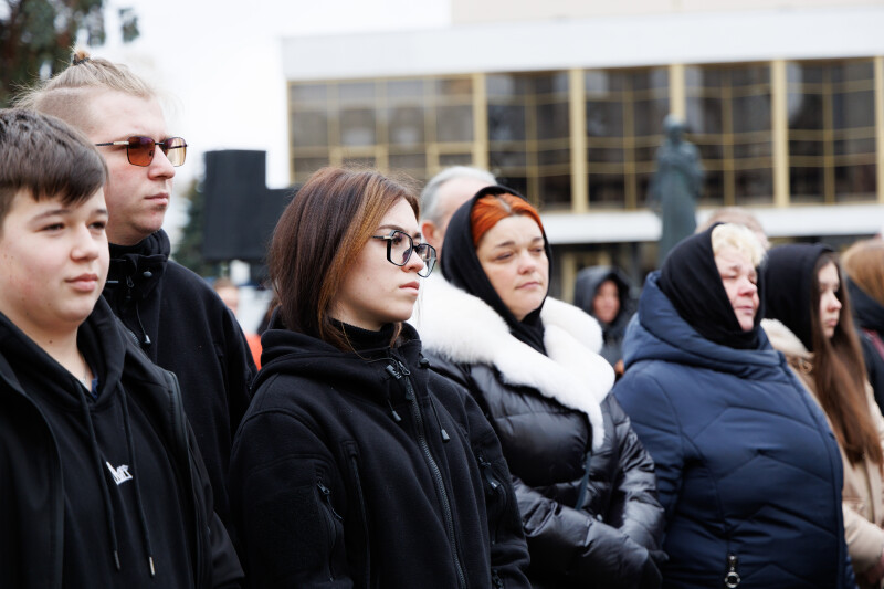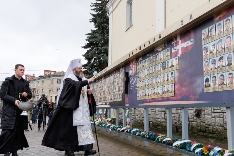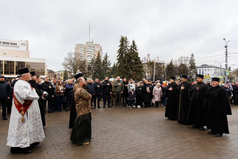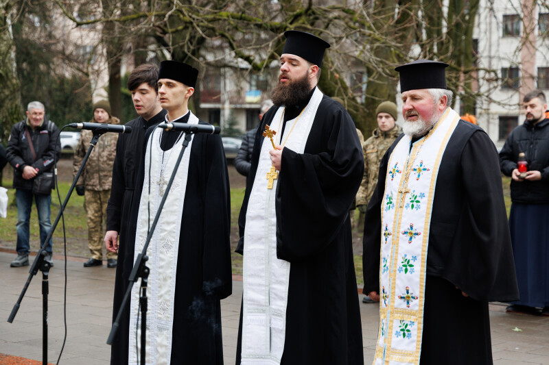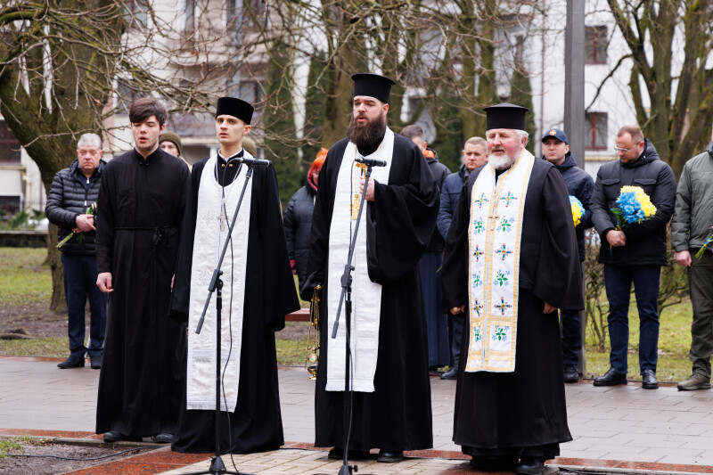 Подвиг Героїв Майдану спершу вшанували біля пам’ятного фотостенду “Герої Небесної Сотні – Загинули за єдність України”. У пам’ять про учасників Революції Гідності священнослужителі провели поминальну панахиду. Хвилиною мовчання та покладанням квітів присутні віддали данину шани Героям Небесної Сотні та всім полеглим захисникам України.