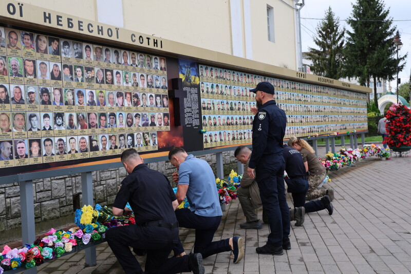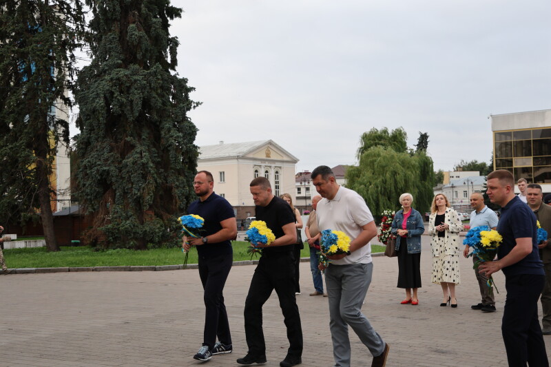 Міський голова Ігор Поліщук, заступник міського голови Ірина Чебелюк разом із керівництвом обласної влади поклали квіти до фотостенда “Герої Небесної Сотні – Загинули за Єдність України”.