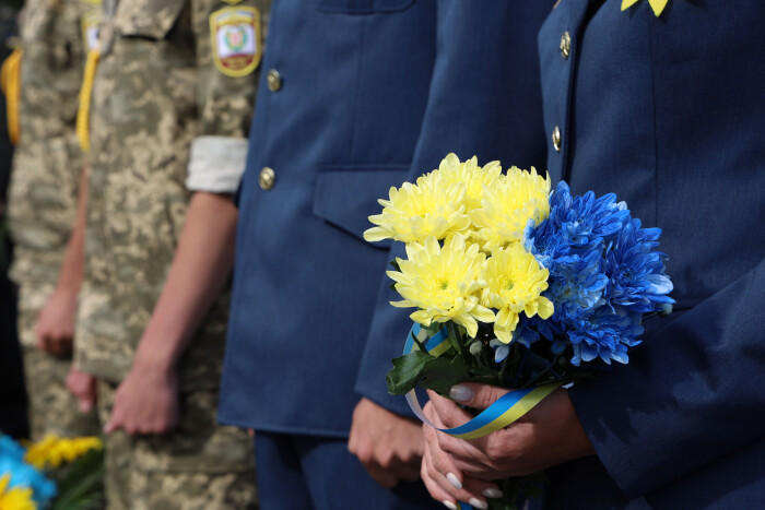 Потому присутні поклали квіти до пам’ятного фотостенду «Загинули за Єдність України» та разом виконали Державний Гімн України.