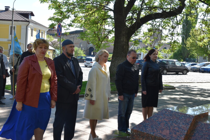 Заступник Луцького міського голови Ірина Чебелюк, а також представники обласної влади спільно з представниками ГО «Кримські татари Волині» поклали квіти до пам’ятного знаку жертвам політичних репресій.