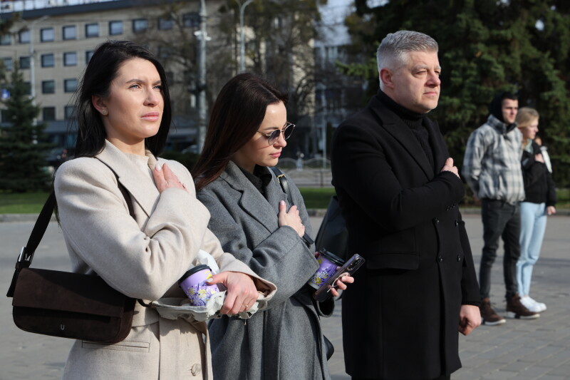 Під час хвилини мовчання присутні вшанували всіх, хто загинув у боротьбі за незалежність України під звуки пісні “Пливе кача”, а також виконали Державний Гімн. Саме цей аудіозапис організатори акції – волонтерка Анастасія Рудик та депутат Луцької міської ради Роман Кравчук – пропонують надалі використовувати в усіх установах та закладах міста. Таку ідею підтримав Луцький міський голова Ігор Поліщук.