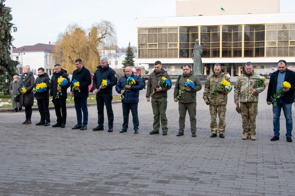 З метою пошанування пам’яті та героїзму захисників незалежності, суверенності та цілісності держави до стенду Героїв небесної сотні прийшли військовослужбовці, добробатівці, громадські активісти та місцеві урядники. Обласну раду представляв голова Григорій Недопад. Присутні поклали квіти і хвилиною мовчання віддали шану загиблим.