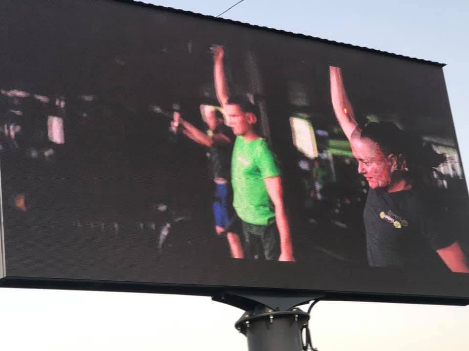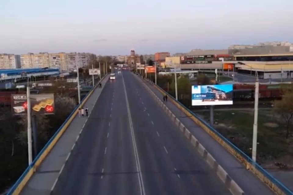 На фото — відеоекран на шляхопроводі по пр. Перемоги, який встановили замість білборда.