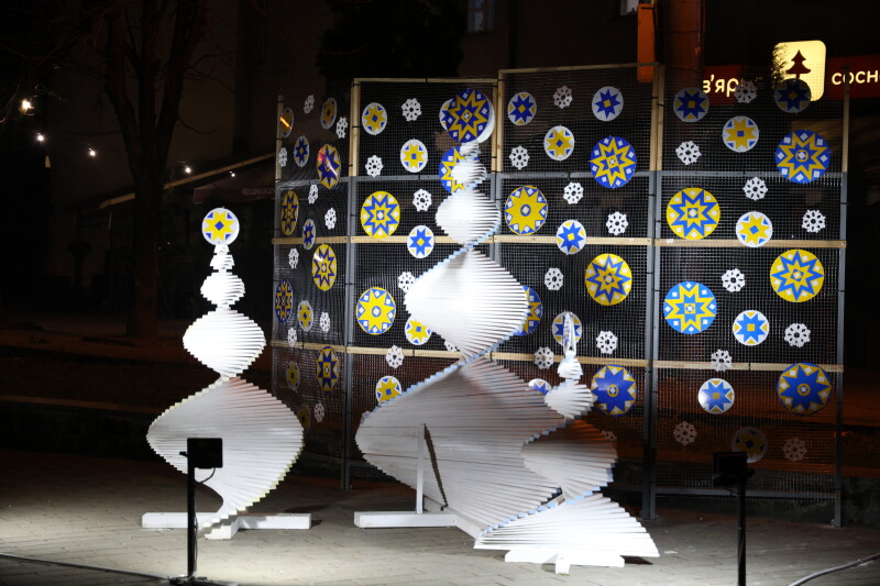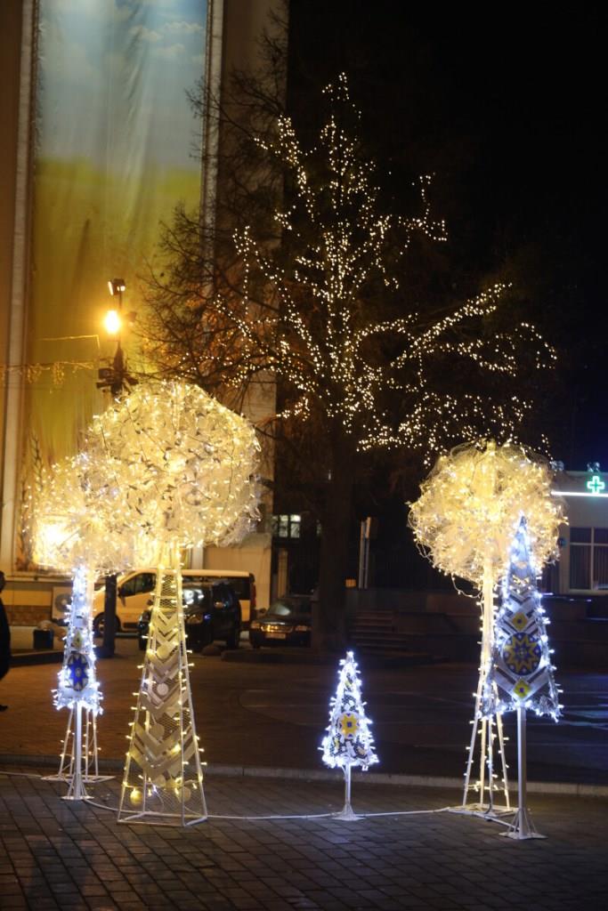 Встановили також три артоб’єкти ручної роботи з дерева у вигляді ялинок, виконані та подаровані місту підприємцем Іваном Конським.