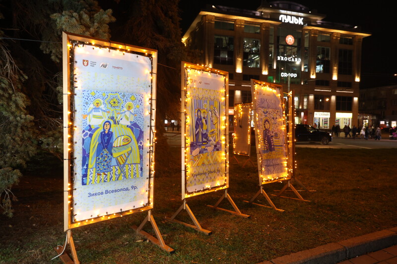 У галереї просто неба на Театральному майдані представлені 24 роботи учасників конкурсу дитячих робіт «Місто святого Миколая».