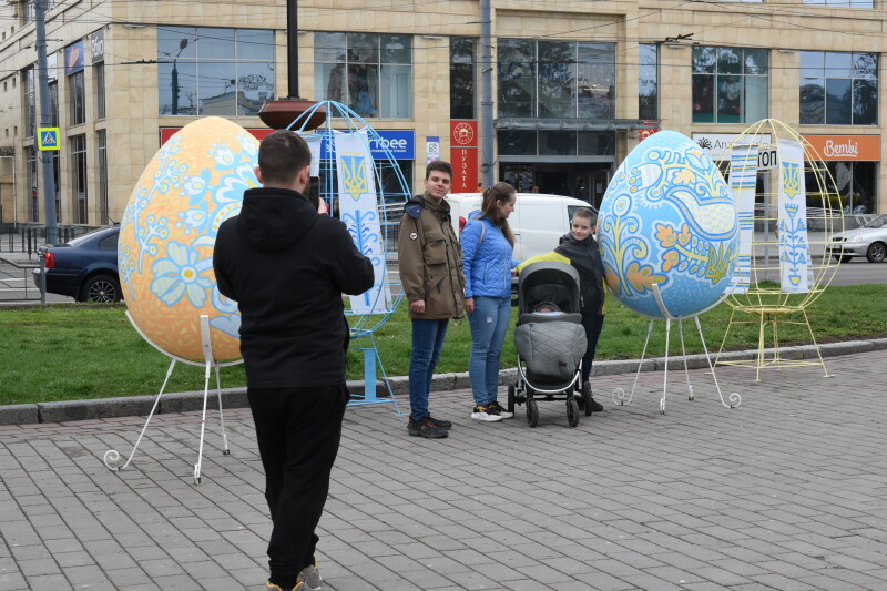 21 квітня на Театральному майдані та на вулиці Лесі Українки встановили Великодні арт-об’єкти «Воскрес Христос, воскресне Україна», «Вирій вічності».