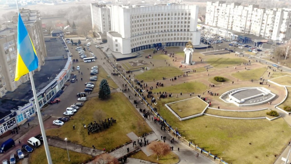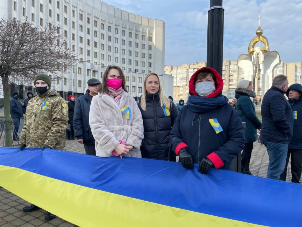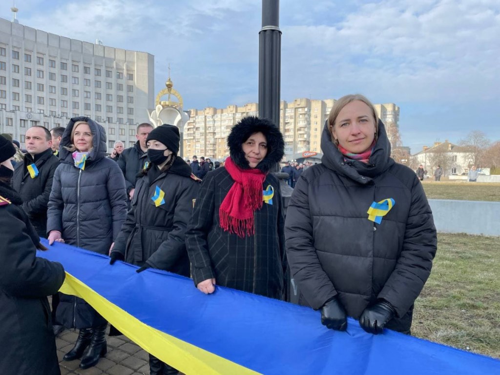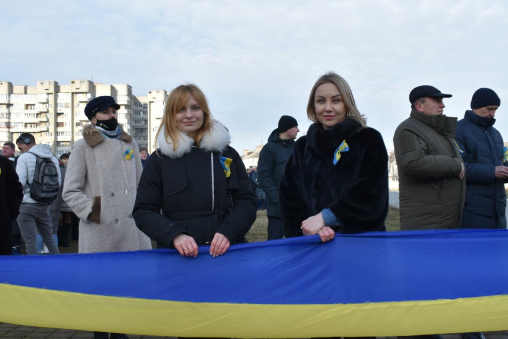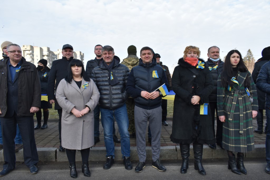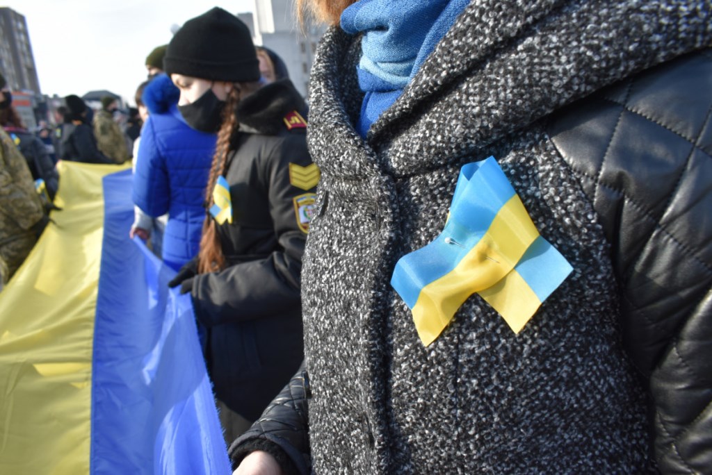 До Дня єднання долучилися студенти, місцеві жителі, військові та представники влади. У кожного на грудях синя-жовта стрічка, яка стала ще одним символом єдності.