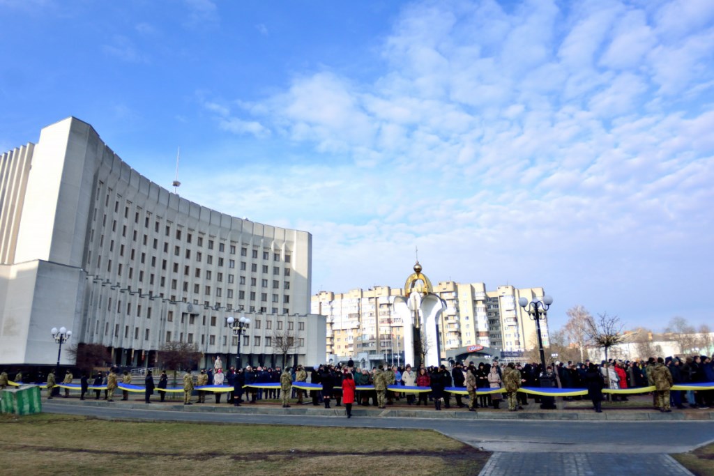 У Луцьку з нагоди Дня єднання розгорнули 200-метровий Державний Прапор