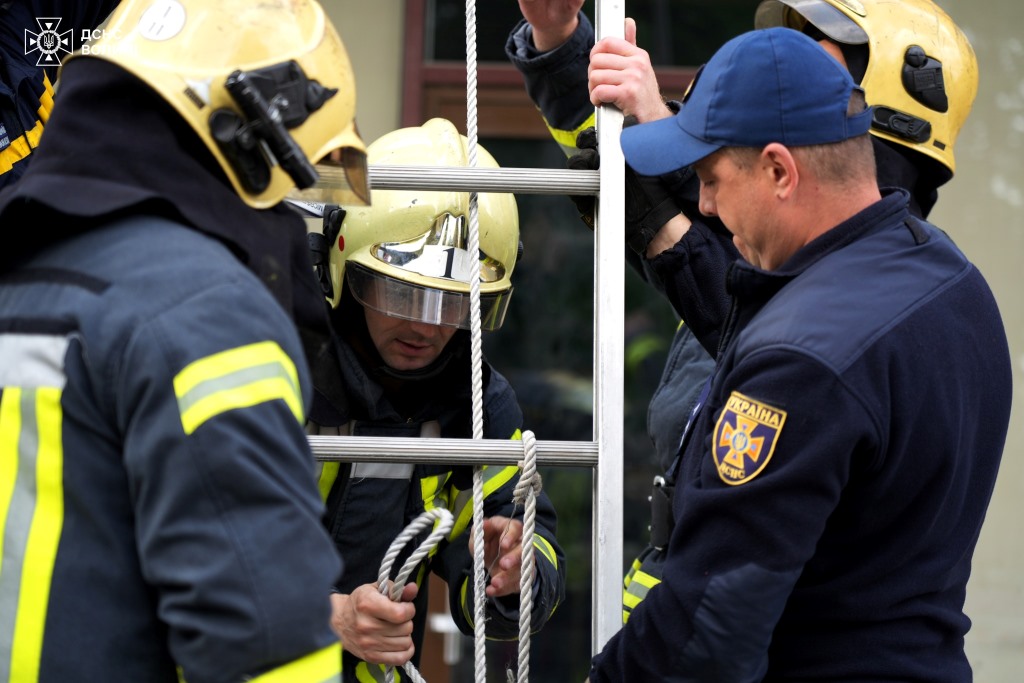 За допомогою спецобладнання працівники ДСНС зафіксували загиблого на ношах і по триколінній драбині транспортували з місця події.