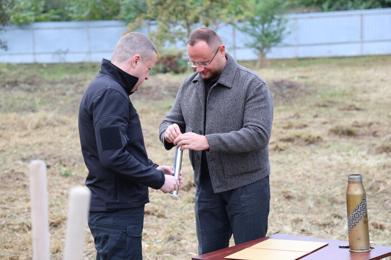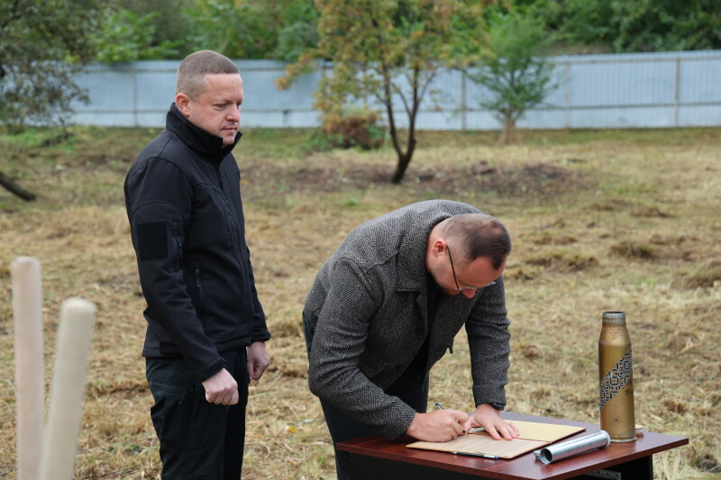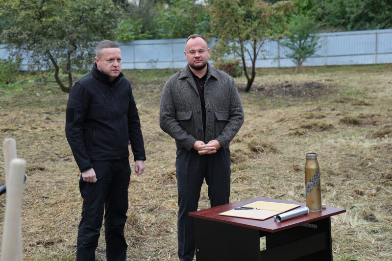Луцький міський голова Ігор Поліщук та начальник Волинської обласної військової адміністрації Іван Рудницький заклали капсулу під будівництво ветеранського простору на вулиці Конякіна у Луцьку.