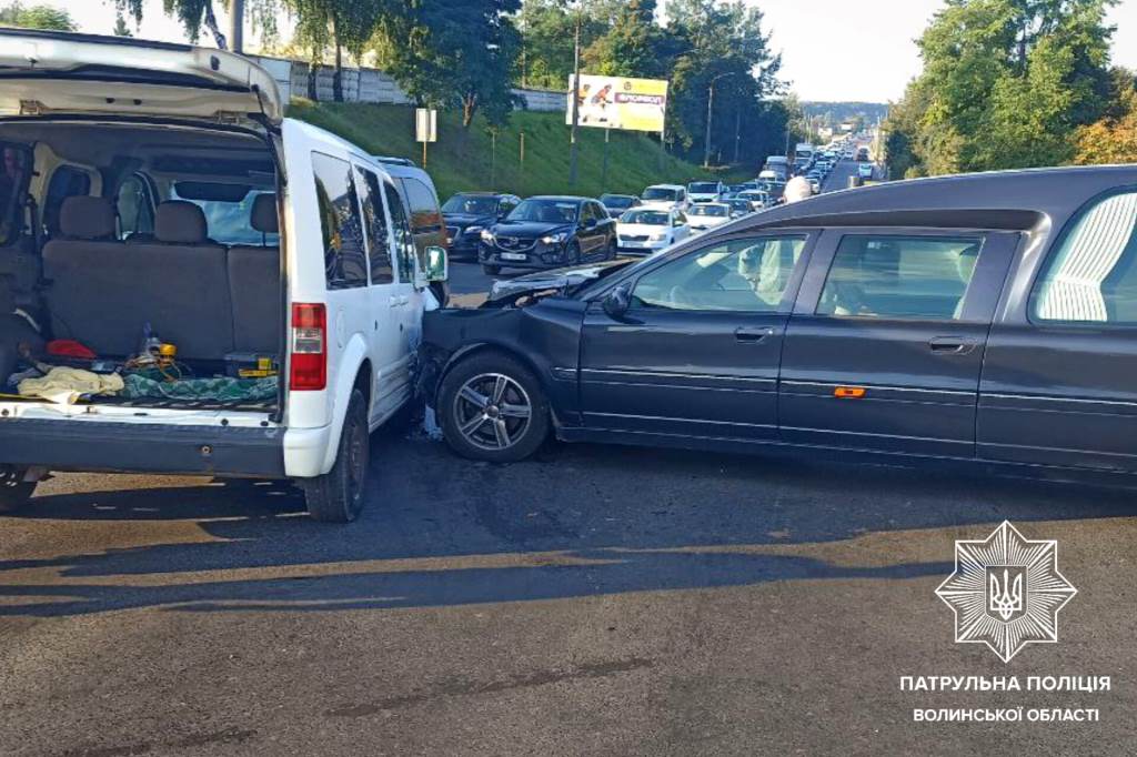 Автопригода сталася на вулиці Глушець близько 8-ї години. Патрульні, які прибули на місце події, з’ясували, що водій похоронного катафалка Volvo не виконав вимоги дорожнього знаку 2.1 “Дати дорогу” та здійснив виїзд на перехрестя. Там він зіткнувся з автомобілем марки Ford, що рухався головною дорогою. А це авто, своєю чергою, вилетіло на зустрічну смугу руху та зіткнулося з легковиком Peugeot.