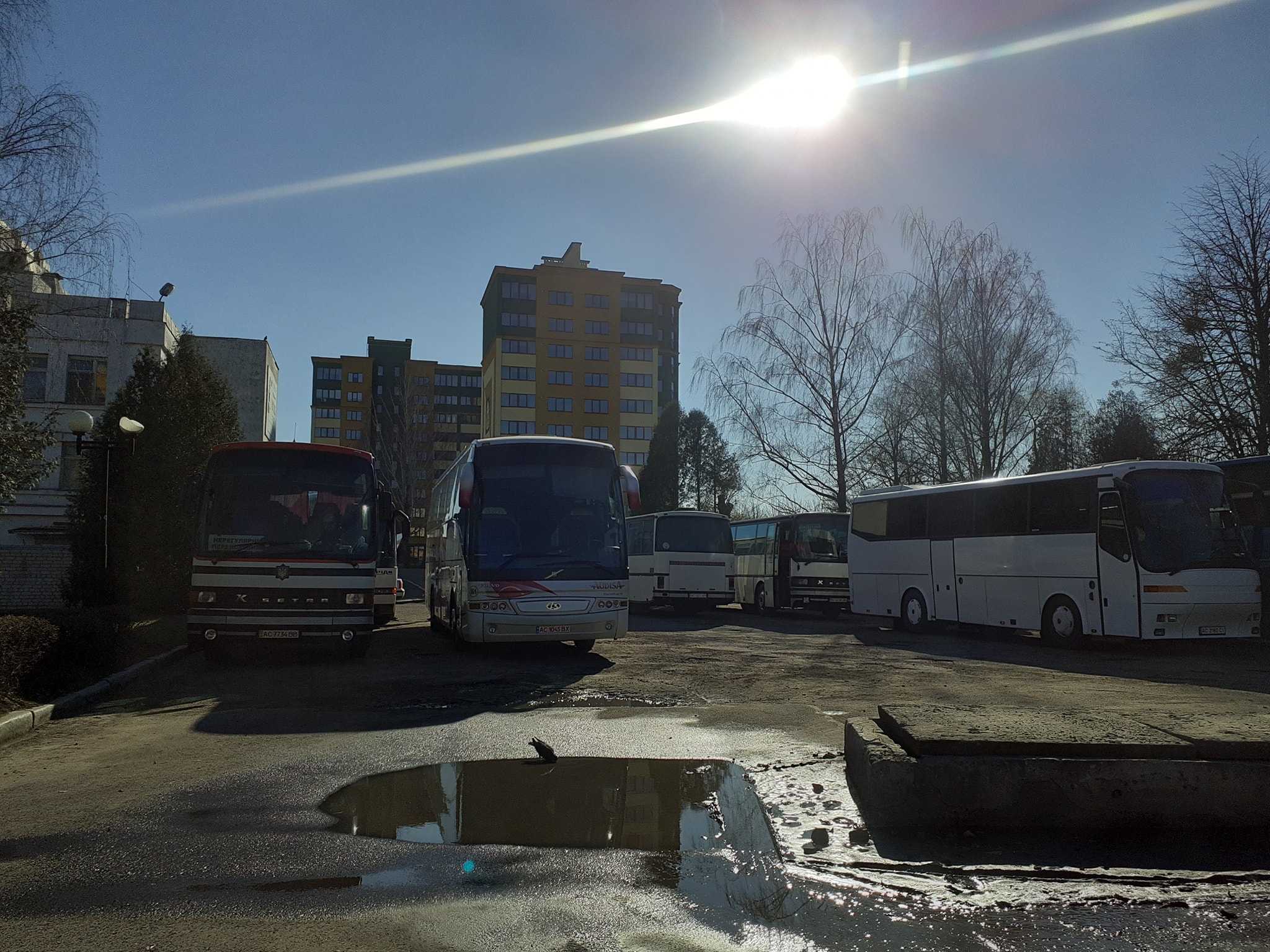 Світлини та відео автобусів, припаркованих на вулицях Глушець та Набережній оприлюднювали у «Фейсбуку» 23 березня.