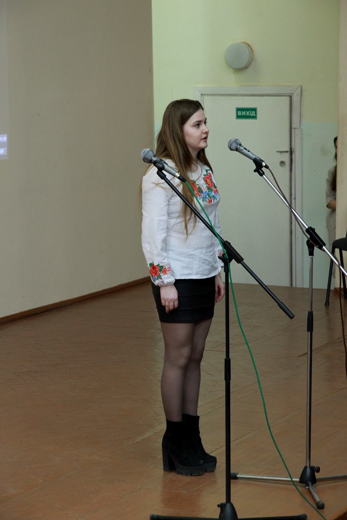 Власні твори-роздуми, твори-мініатюри, розповіді про життєвий і творчий шлях Тараса Шевченка зачитали студенти: Цалай Катерина (МО-41), Вальчишина Вікторія (ФБС-11), Баклан Анастасія (ОП-11), Лашта Валерій (ФБС-11), Шилюк Ірина (ФБС-11) та Приступа Юлія (ФБС-11). Продекламували поезії Тараса Шевченка студентка групи ОП-11 Коцур Олена та студент відділу неперервного навчання Фрайдун Сафі.