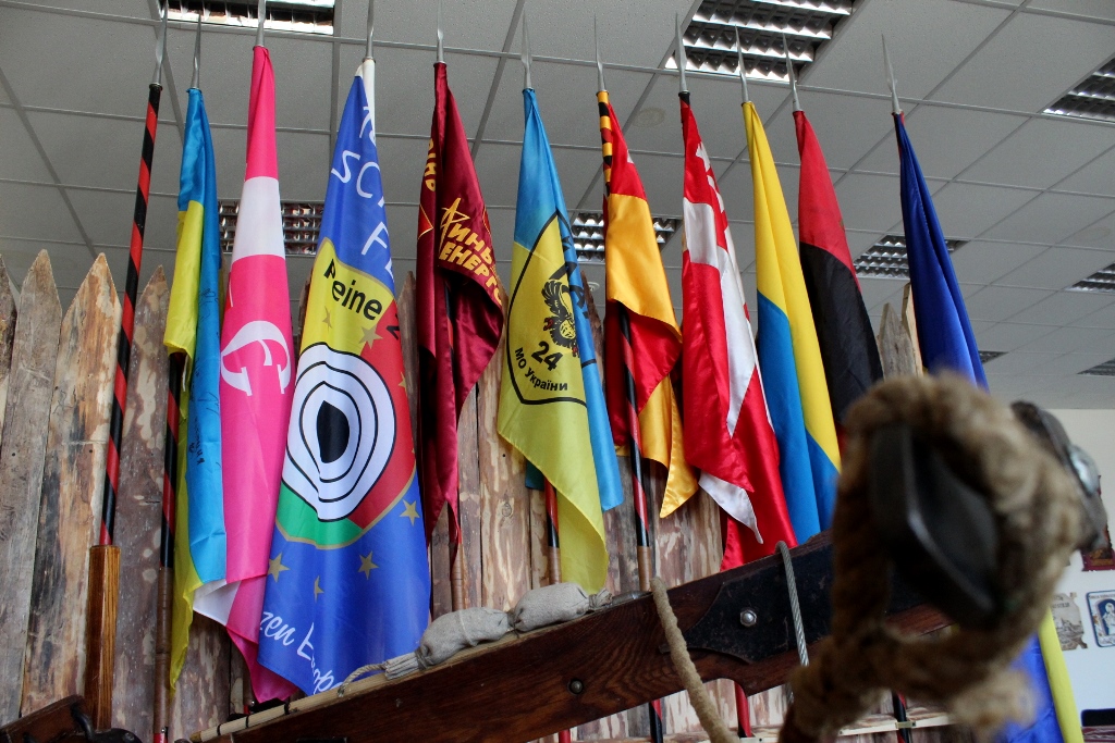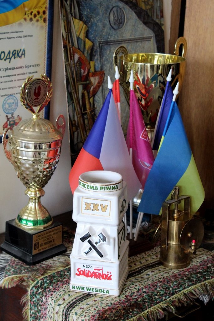 Крім того, світлиця прикрашена прапорами, зокрема стрілецького братства, знаменами, що мають столітню історію та новими, котрі побували на передовій на Сході України.