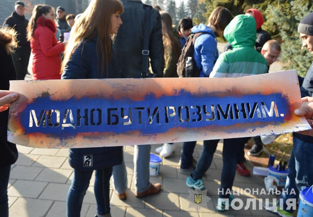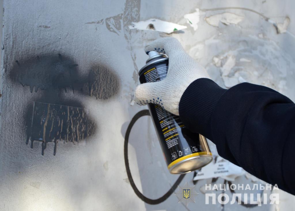У Луцьку діти разом із поліцією зафарбовували рекламу наркотиків. ФОТО